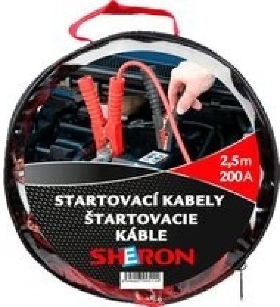 startovací kabely, délka 2.5m, max. proud 200 ampér, baleno v praktické uzavíratelné „kabelce.“, na trhu je množství kabelů balených v otevřené „taštičce“ - možnost vypadnutí, nevhodné uložení