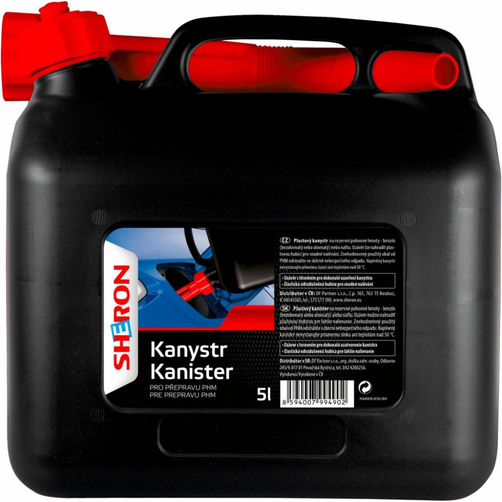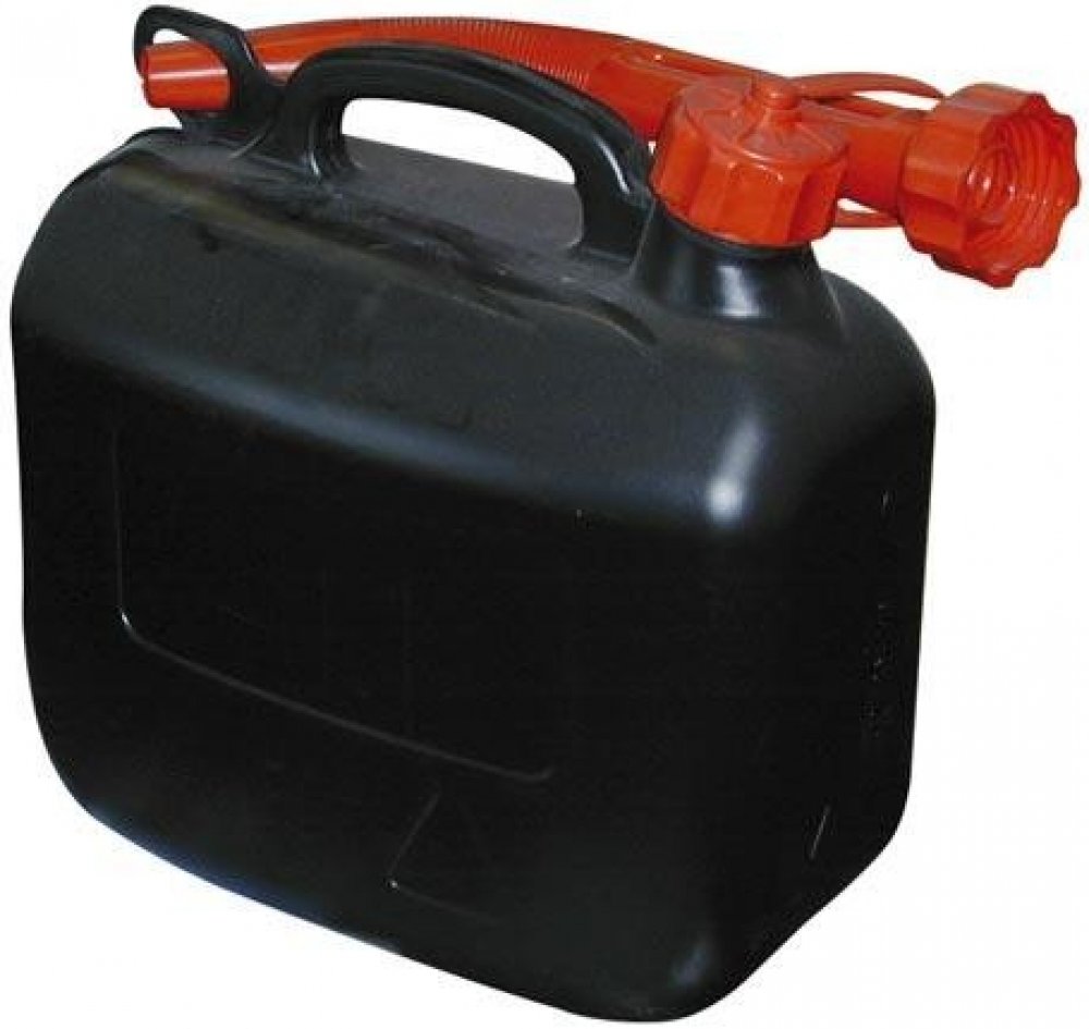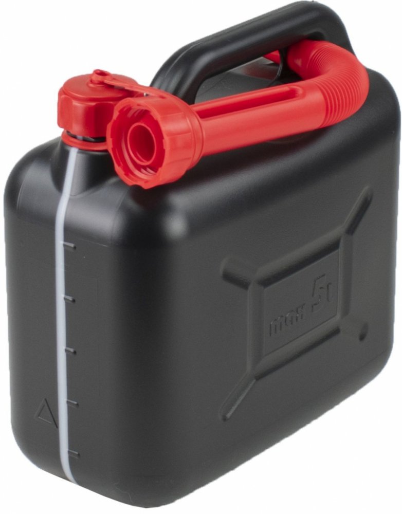 Kvalitní plastový 5litrový kanystr na přepravu pohonných hmot.