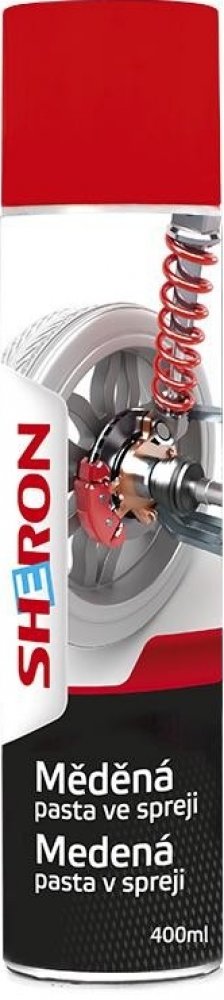 SHERON Měděná pasta ve spreji. Speciální extra účinný mazací prostředek s vysokou tepelnou odolností v rozmezí -30°C až +1100°C. Vyvinutý pro všechny druhy tepelně namáhaných segmentů ve strojírenském, automobilovém a motocyklovém průmyslu.