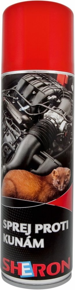 SHERON sprej proti kunám slouží k ochraně kabelů a drátů před kunami., je bez zápachu. Vzhledem k jedinečnému, lepkavému filmu se kuny vyhnou ošetřeným povrchům. Nástřik je odolný vůči vlivům počasí a slabým kyselinám a zásadám. Neneste důkladně v rovnoměrné vrstvě na kabely a dráty. Sprej by měl mít pokojovou teplotu. Ošetření nabízí dlouhotrvající ochranu až 6 měs...