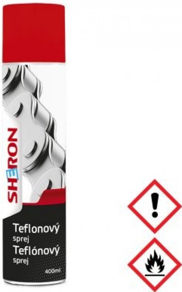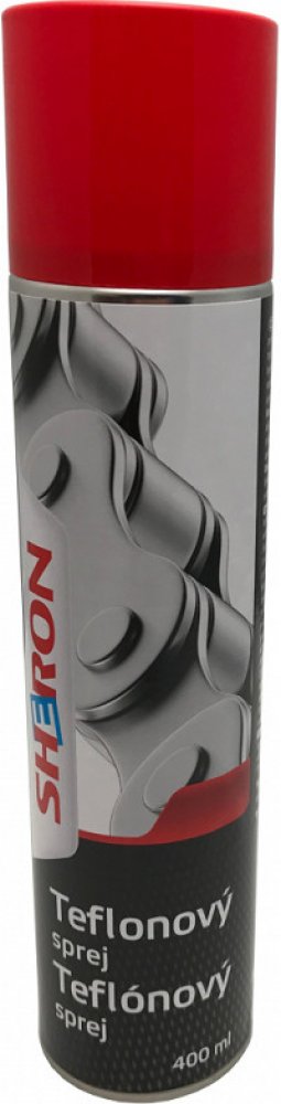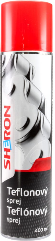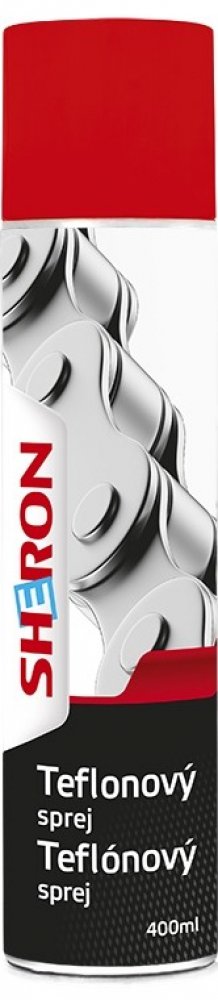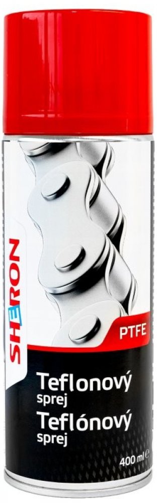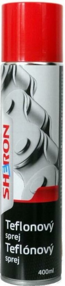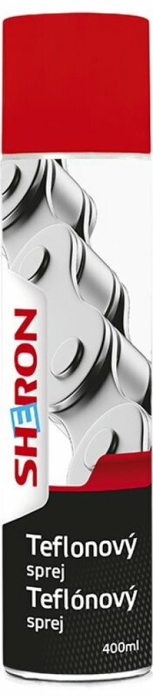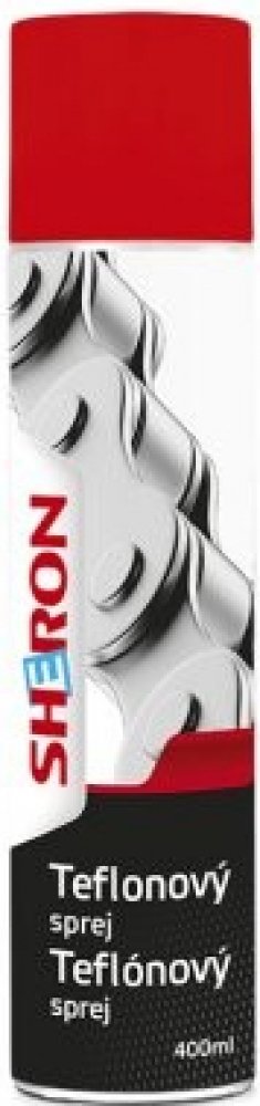 SHERON teflonový sprej 400ml Speciálí kluzný přípravek pro použití na kov, gumu i plast. Odolný vůči vysokým teplotám v rozmezí od - 50°C až + 260°C. Odolný vůči solím, zásadám a kyselinám. Zabezpečuje dlouhodobé kvalitní promazání namáhaných dílů, snižuje tření, odpuzuje nečistoty, vlhkost a je antiadhezivní.