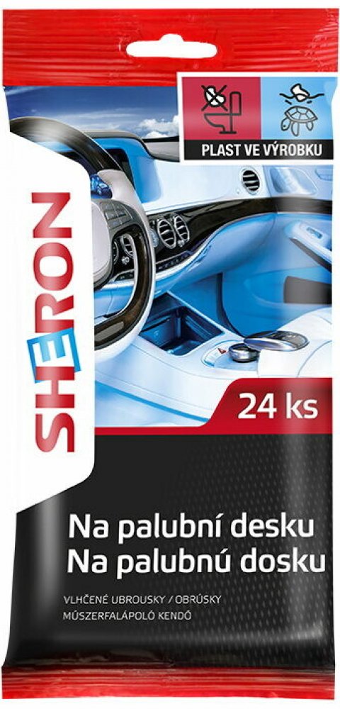 Ubrousky na palubní desku (24 ks) SHERON. balení: 24 ks Vlhčené ubrousky na očištění palubní desky automobilu a ostatních plastů. Vhodné nejen pro motoristy, ale i pro použití do domácnosti. Zůstávají vlhké a vždy připraveny k použití.