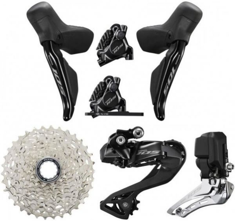 Základní elektronická sada Shimano 105 Di2 R7170 s kotoučovými brzdami, která díky elektronickému systému zajišťuje přesné a rychlé řazení za všech podmínek.