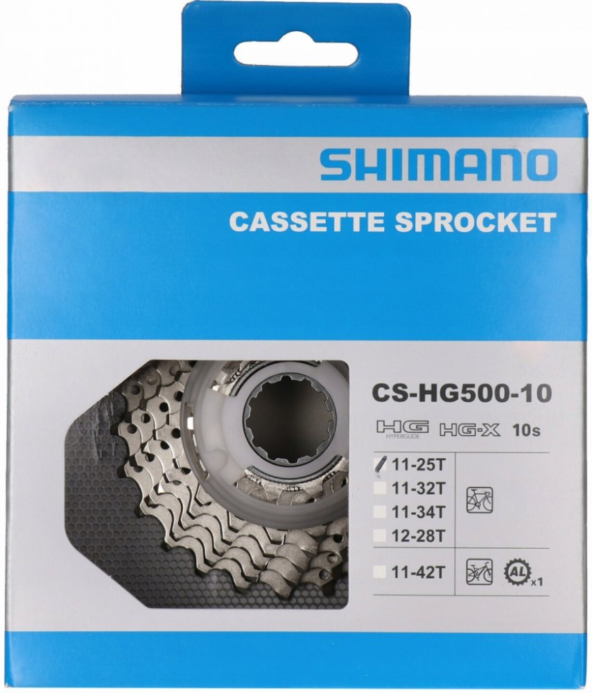 - Kazeta HG500-10 je k dispozici s širokým rozsahem převodů. Byl v ní použit pavouk s nízkou hmotností zajišťující plynulé odstupňování převodů v 10řadém rozsahu