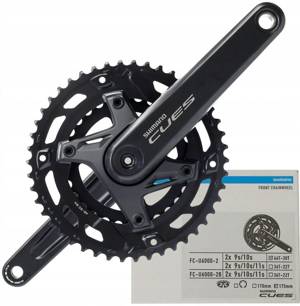 Kliky CUES FC-U6000-2 byly navrženy společností Shimano pro pohony Linkglide ve sportovních městských, turistických a horských kolech. Je vhodný pro 2x9, 2x10 a dle verze i pro 2x11rychlostní přehazovačky a vyrábí řetězovou šňůru 48,8 mm. Proto jsou rozměry rámu přes pojistnou matici 135 mm a 142 mm kompatibilní. Q-faktor je 180 mm. Dvoudílná konstrukce klik poskytuje optimální poměr tuhosti k hmo...