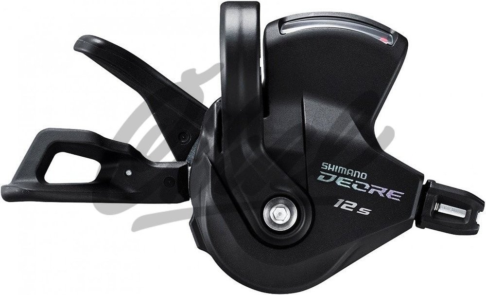 Pravá řadicí páka s objímkou Shimano Deore SL-M6100 na 12 pastorků. S grafickým ukazatelem rychlosti. Two-way release s možností řazení na těžší převod jak ukazováčkem, tak i palcem jako u Sramu. Velkou páčkou je možno přeřadit až o tři převody naráz. Tělo řazení je z hliníku, páčky z oceli a kompozitu. Dodáváno včetně lanka, bowdenu a koncovek.
