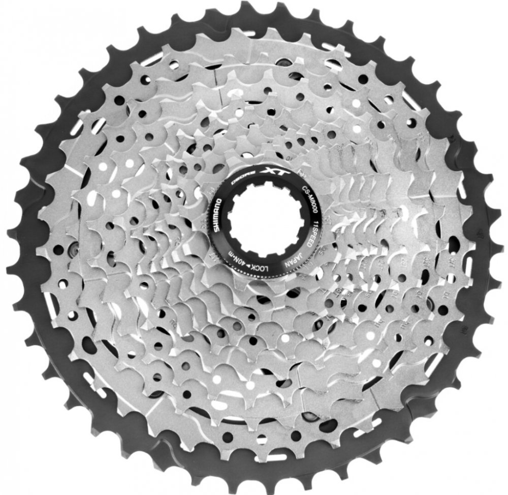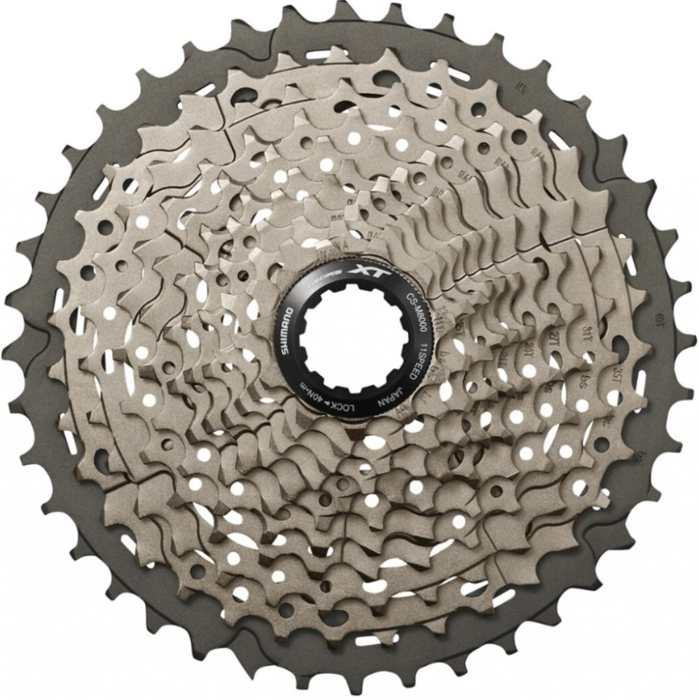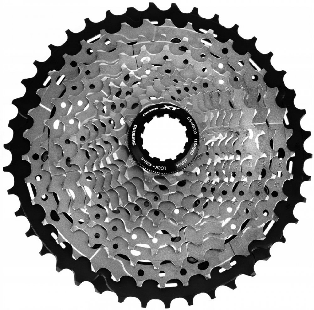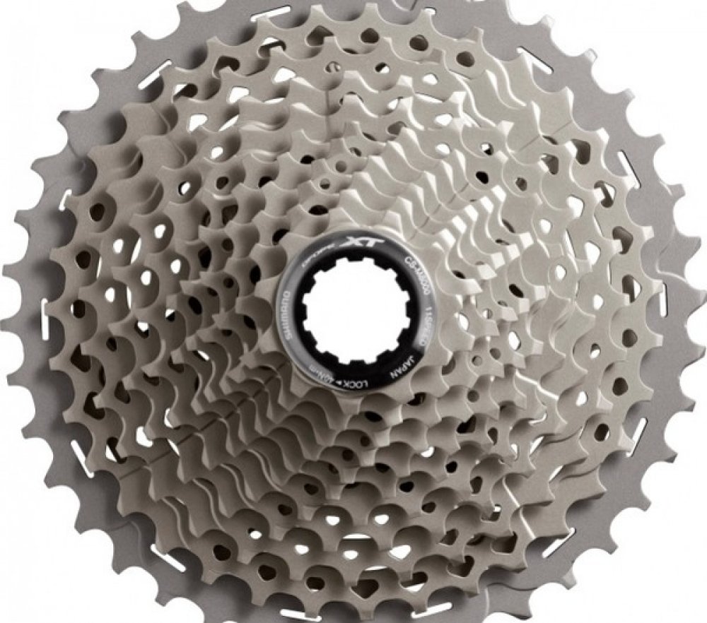 11-ti rychlostní model kazety zn. Shimano v provedení náležící do sady komponentů s označením XT 8000.