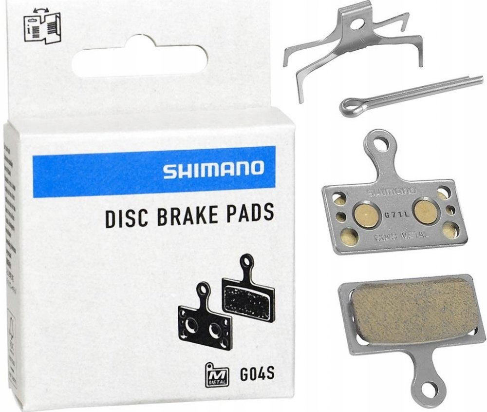 Brzdové destičky Metal G04S. Kompatibilní s brzdami BRM9000/8000/7000. Typ: MTB, Celková hmotnost balení: 48 g, Bez chladiče, Černé, Balení: pár, Pro typy brzd: BRM9000/8000/7000, Materiál: Ocel.