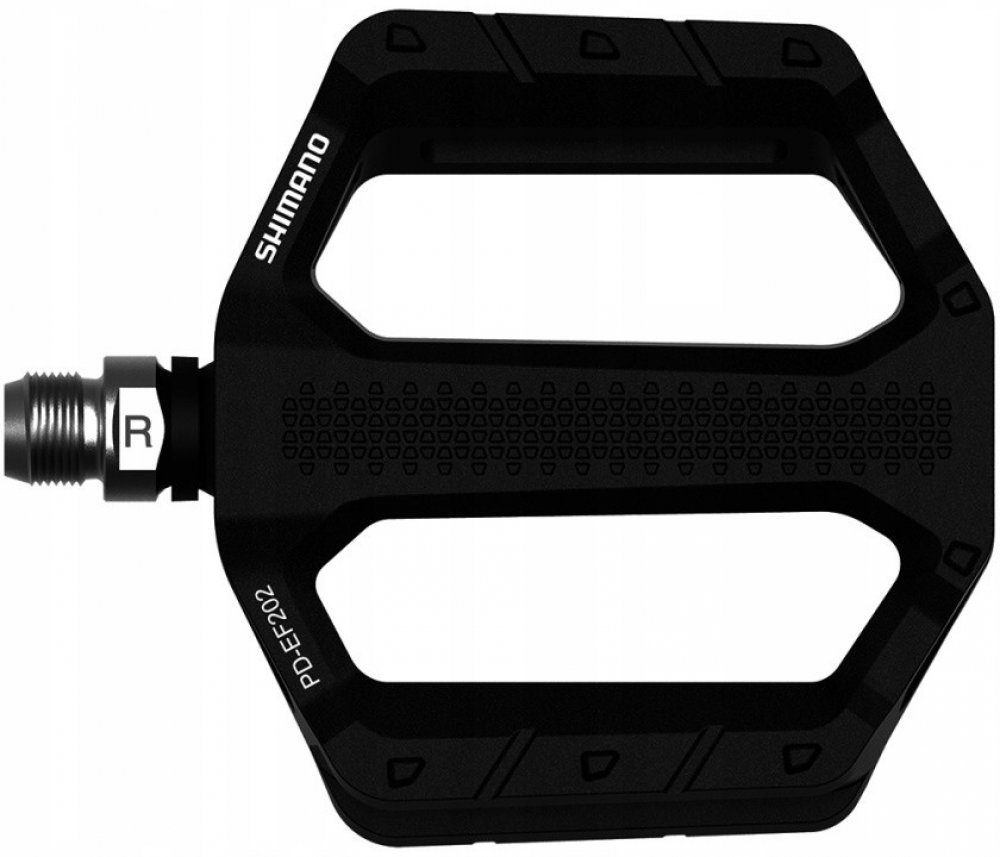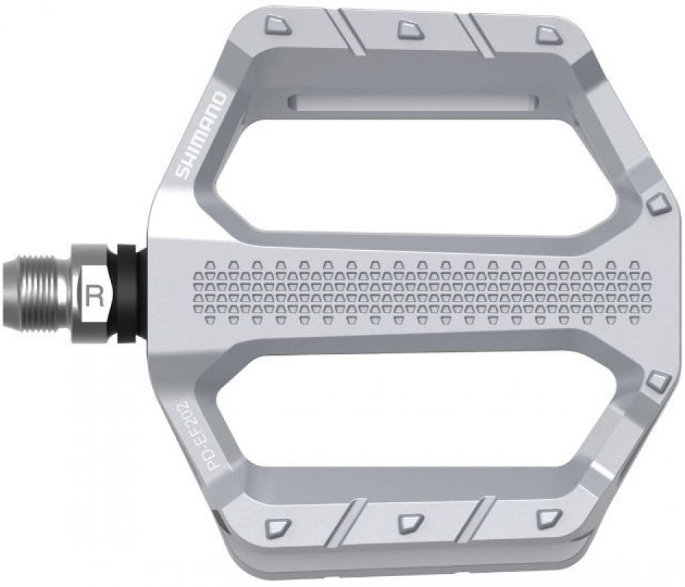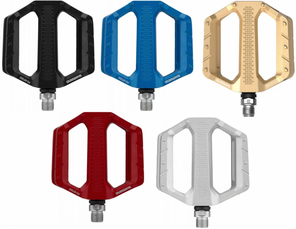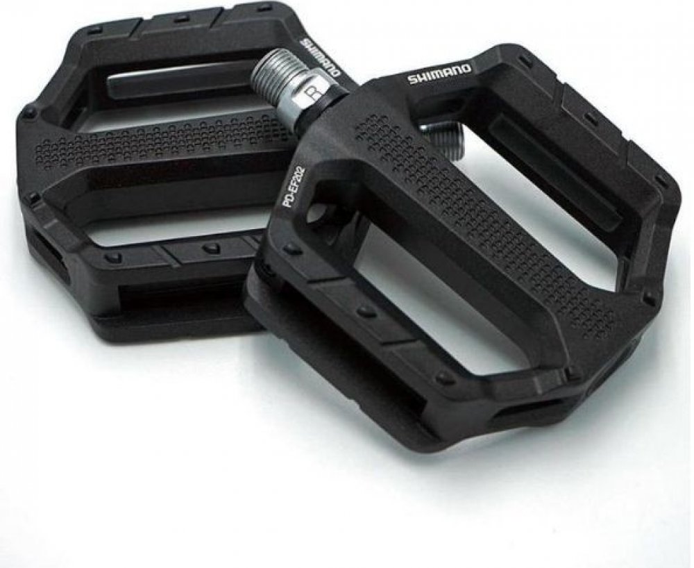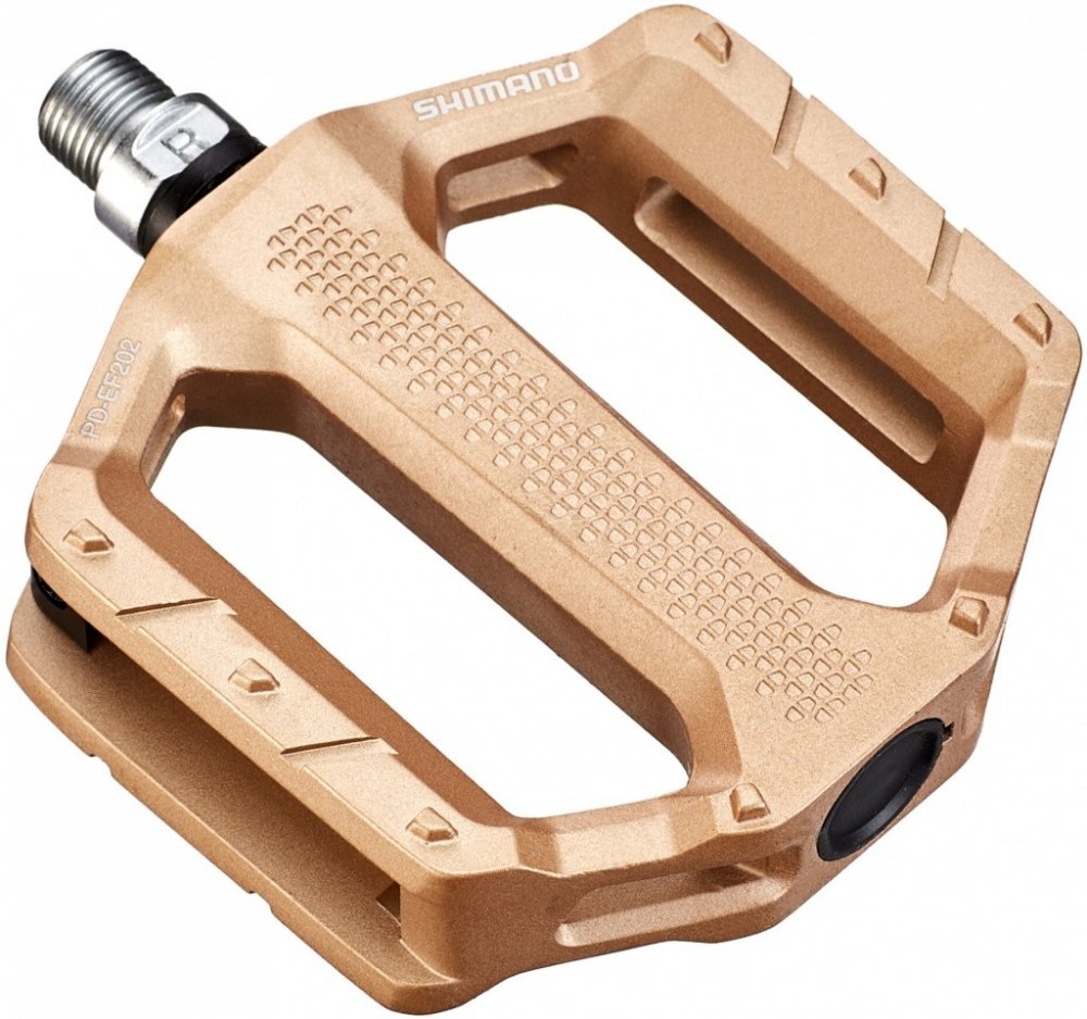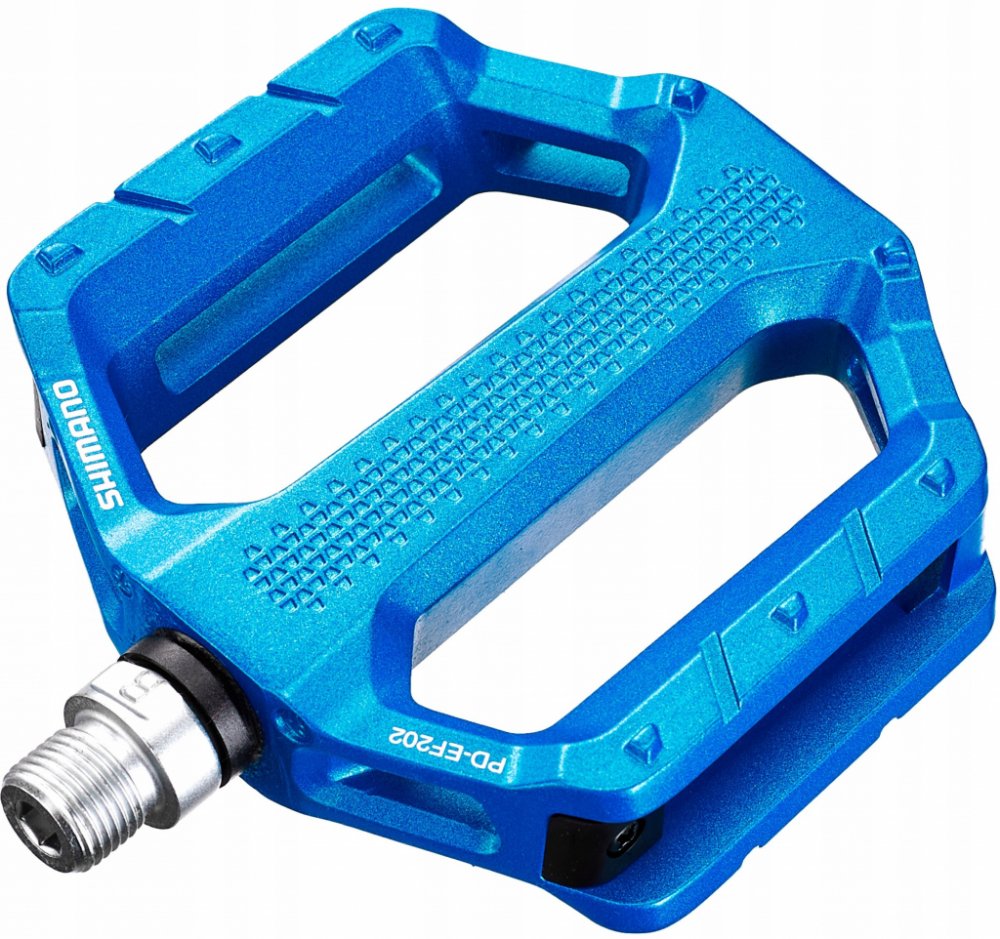Shimano PD-EF202 jsou platformové pedály s hliníkovým tělem obsahujícím prohlubně pro MTB, cestování a použití ve městě. To snižuje hmotnost ve srovnání se sesterským modelem PD-EF205 a poskytuje lepší odolnost proti špíně a špíně. Pedály mají odolnou ocelovou nápravu a nabízejí turistům, dojíždějícím a rekreačním cyklistům stabilní kontaktní plochu s plochými integrovanými kolíky. V neposlední řadě je PD-EF202 k dispozici v několika atraktivních barvách. Pro příležitostné ježdění mají ploché pedály SHIMANO PD-EF202 široké hliníkové tělo a strukturovaný povrch pro stabilní platformu šlapání. Tyto odolné pedály jsou navrženy pro použití s běžnou obuví a jsou ideální pro sportovní volnočasové jízdy a dojíždění. Funkce: