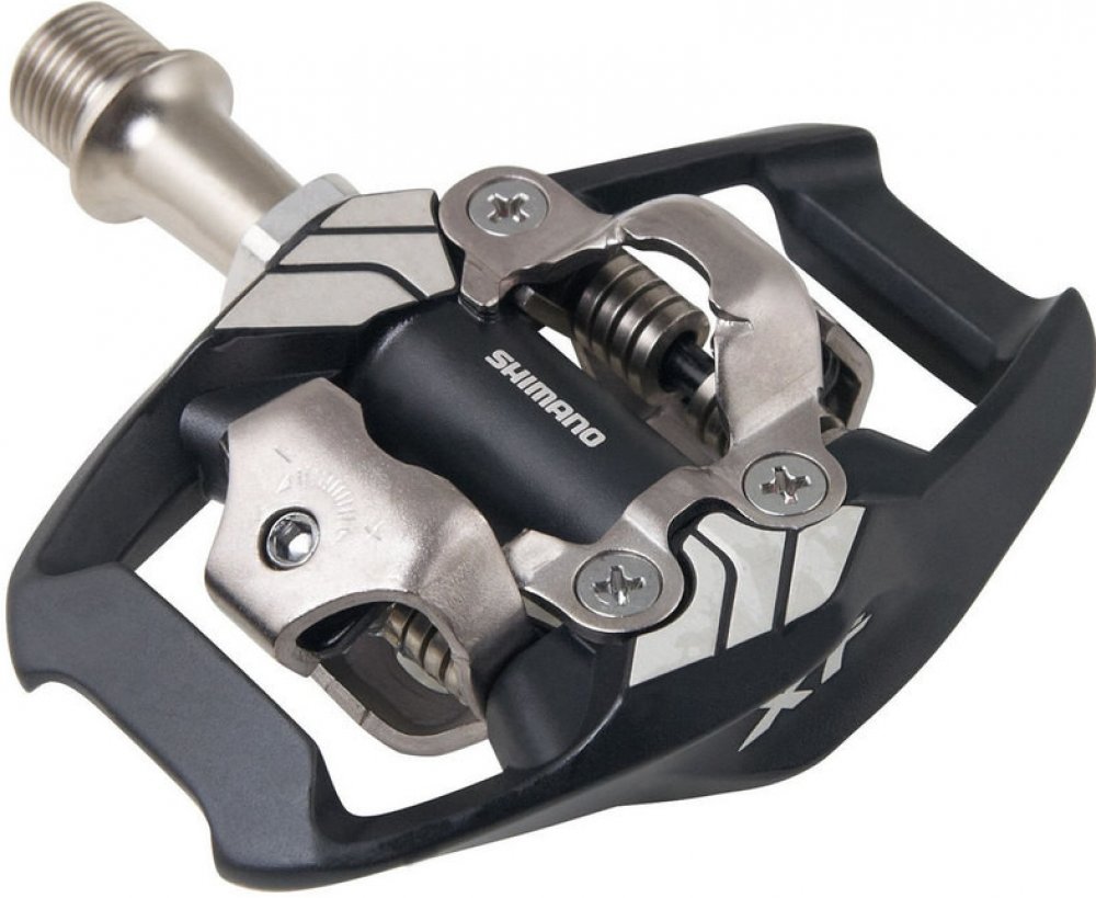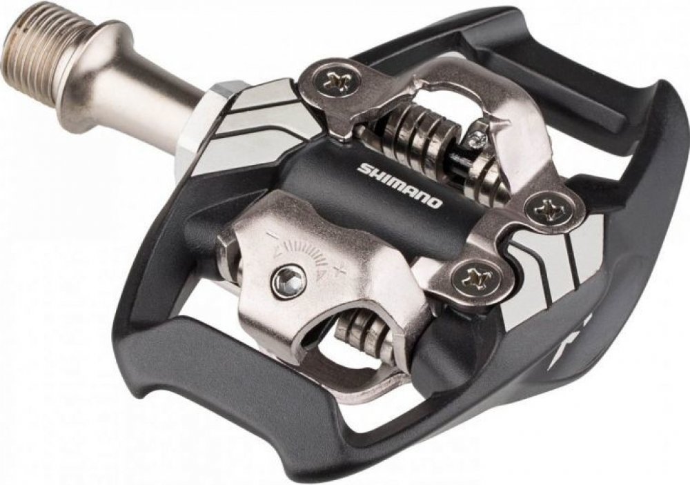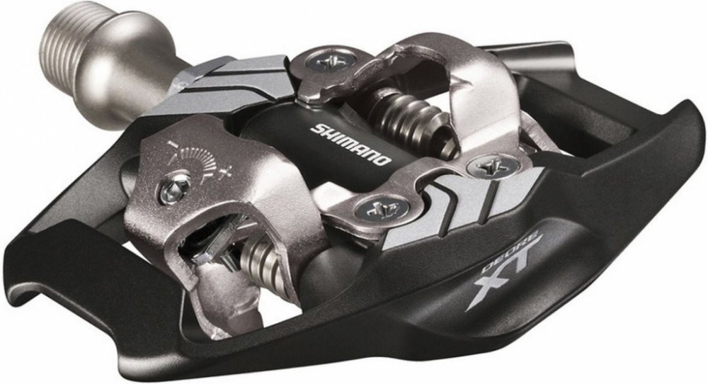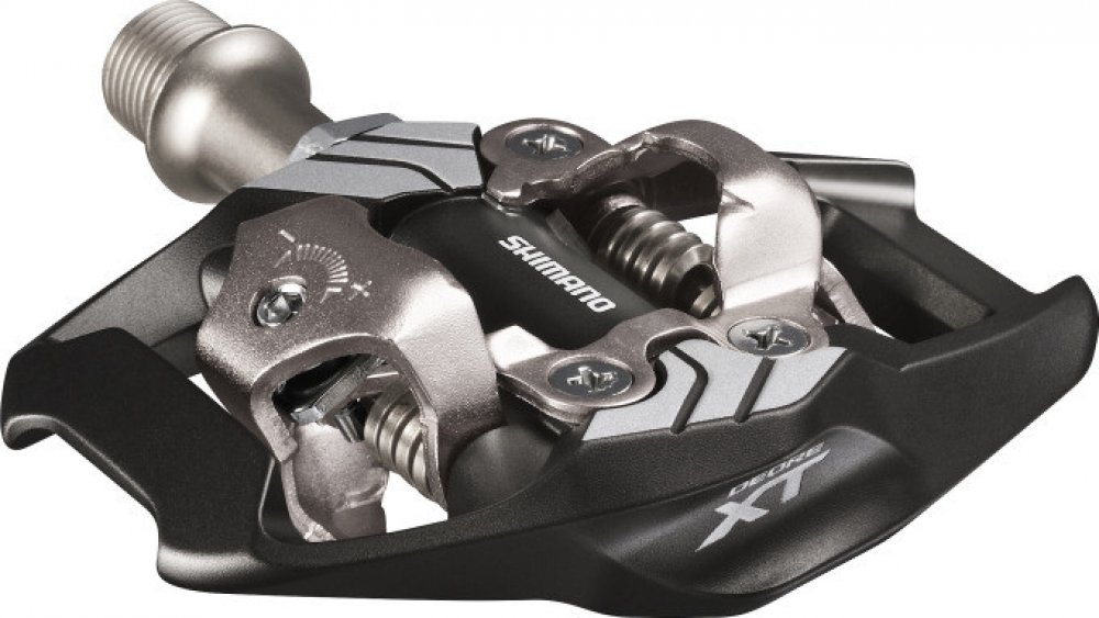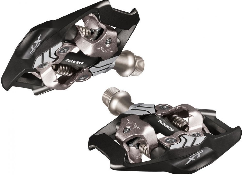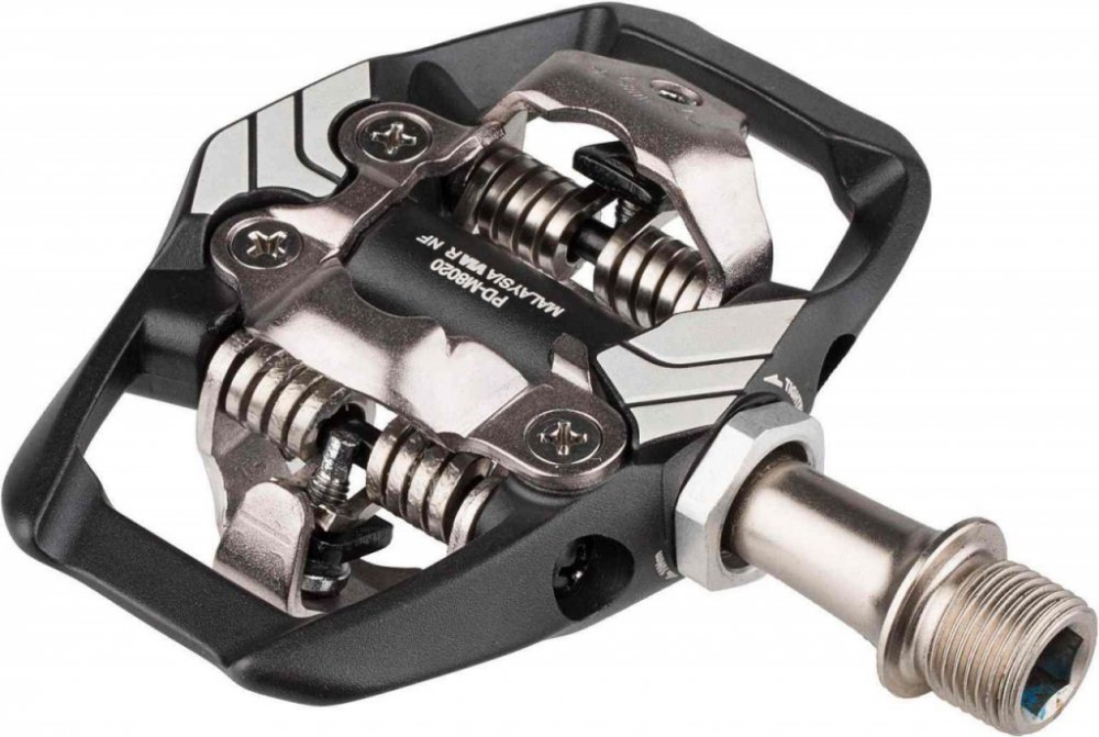 Nášlapné SPD pedály s klecí SHIMANO Deore XT PD-M8020 Oboustranné MTB pedály Shimano. Pedály pro trail a enduro, konstruované pro přesné ovládání bicyklu. - široký kontakt mezi pedálem a obuví - nižší styčná plocha pro vyšší stabilitu šlapání do pedálů. - integrovaná klec zvyšuje stabilitu a vedení i v situacích, kdy obuv není upnuta v pedálu. - klec rovněž chrání mechanismus před nárazy. - robustní výstupky zámku zaručují hladké upnutí a uvolnění obuvi. - samočistící upínací mechanismus - nastavitelné předpětí zámku pro upnutí a uvolnění. Nastavitelná vypínací síla zámku pro snadné vycvaknutí tretry z nášlapné části pedálu. - Otevřené provedení mechanismu brání ulpívání nečistot. - hřídel s utěsněnými ložisky - Oboustranný mechanismus umožňující naklapnutí tretry z obou stran. - tuhá, odolná CrMo osa s vnitřním šestihranem na imbus klíč 8mm. Hmotnost páru : 408g Balení vždy obsahuje set pedálů včetně zarážek (kufrů) sm-sh51