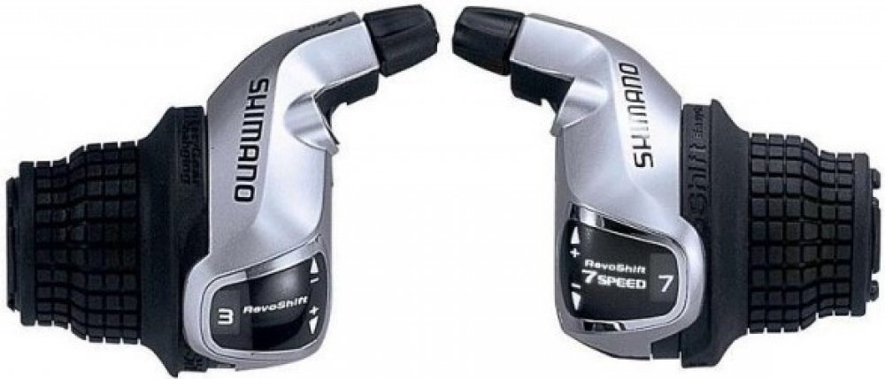 • otočné řadíci jednotky Shimano řady Tourney Revoshift RS45 7x3 rychlostí (levá indexd / 7 ryclostní index pravá jednotka)