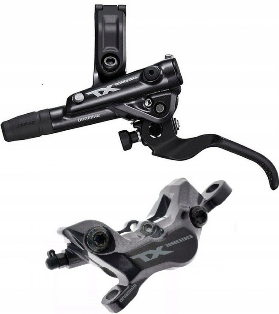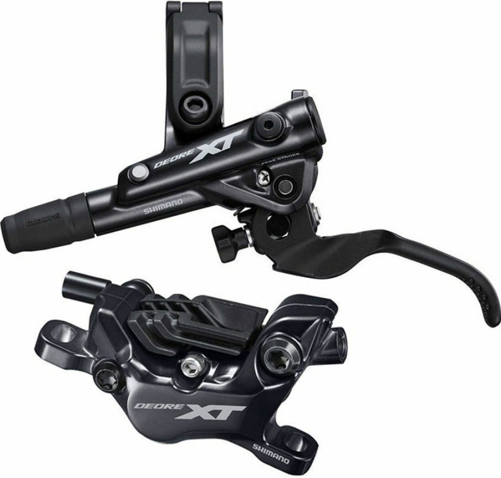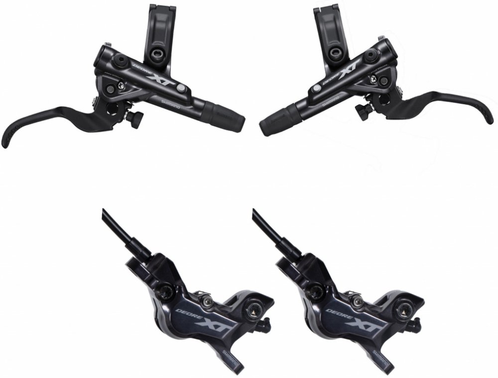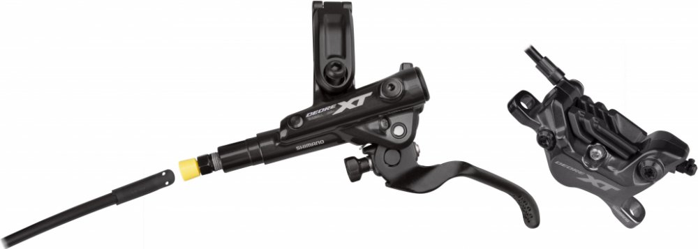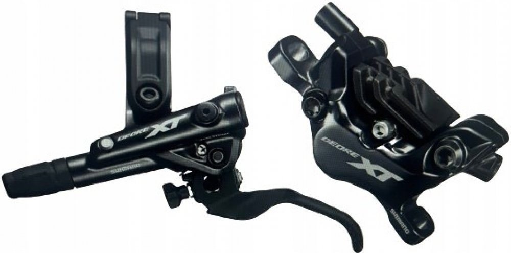 Hydraulické kotoučové brzdy XT M8120. Skládá se z páky M8100 a třmenu M8120 (4pístek) a hadice BH90. Brzdy jsou naplněny minerálním olejem a odvzdušněny. Objímka páky je kompatibilní pro montáž přehazovačky s uchycením I-Spec EV. Brzdové destičky N03A.