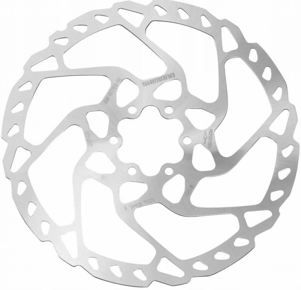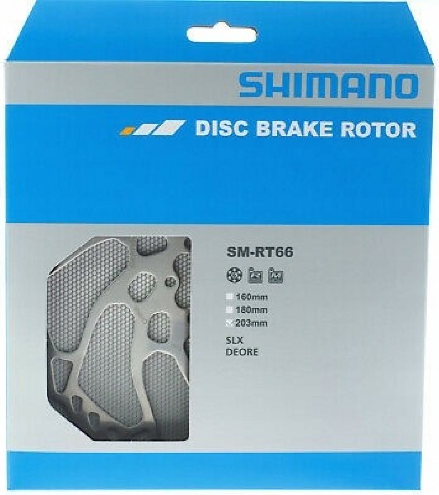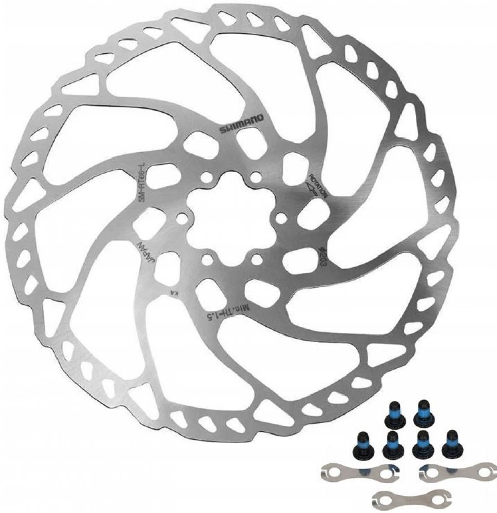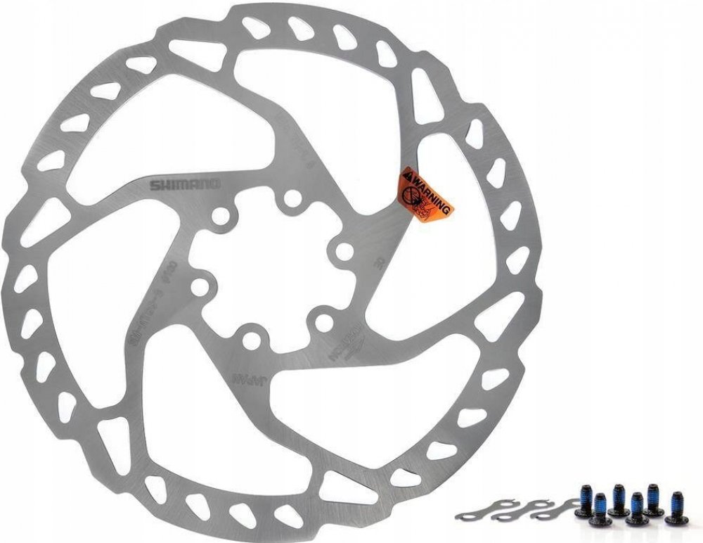 SHIMANO SLX SM-RT66 SHIMANO brzdový kotouč SLX SM-RT66 pro 6 děrové kotoučové náboje. Určený pro polymerové (resin) i metal (kovové) brzdové destičky. Nejsou kompatibilní se systémem Shimano Center-Lock. Brzdový kotouč Shimano SM-RT66 se 6 šrouby je vyroben z jednoho kusu lisované nerezové oceli, která byla dodatečně tepelně zpracována a leštěna. Je k dispozici s průměrem 160 mm a 180 mm a doporučuje se pro řadu ZEE, Deore a Alfine, ale lze jej použít i s jinými brzdami. Kotouče SHIMANO SM-RT66 poskytují konzistentní brzdnou sílu za všech jízdních podmínek. Součástí jsou 3 samosvorkové neuvolňující podložky pro rychlou a bezpečnou montáž a 6 montážních šroubů. - 6 šroubů (roztečný průměr 44 mm) - varianty průměru kotouče : 160mm /180 mm