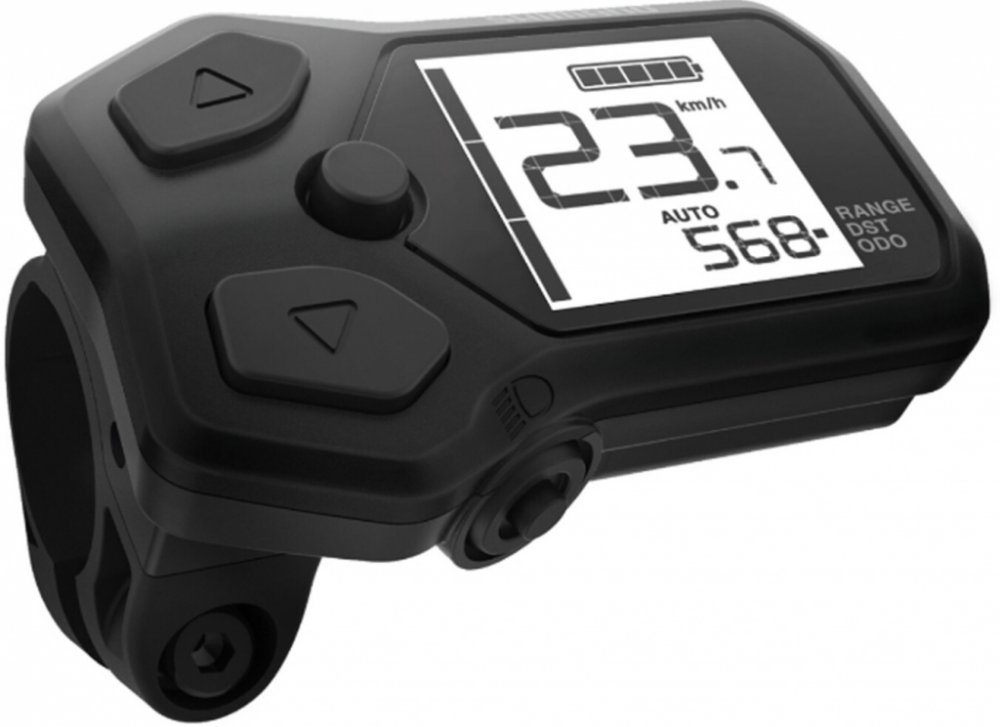 • funkce: denní a celková vzdálenost, aktuální, průměrná a maximální rychlost, čas, kapacita baterie, dojezd,