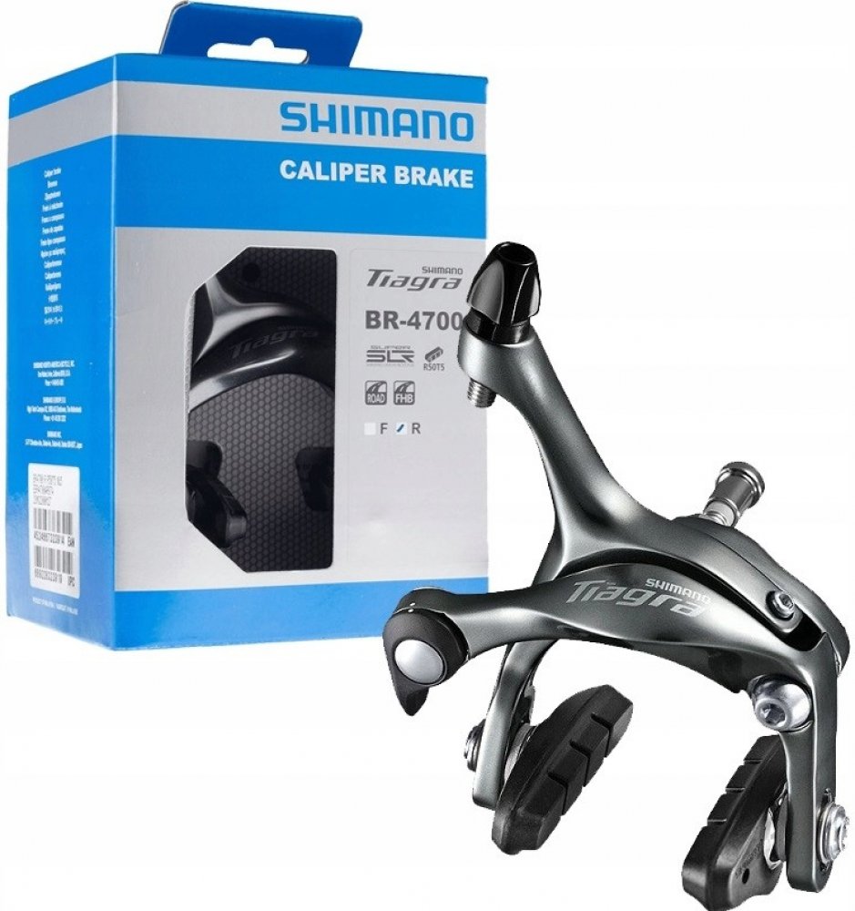 Brzda přední SHIMANO TIAGRA BR-4700 je dvou-osá brzdová čelist na silniční kola. - spolehlivá silniční brzda s hladkým chodem - přední brzda pro upevnění na přední vidlici ( šroub 27,5mm) - o 30% zlepšená modulace účinku s lineárním nárůstem brzdné síly - axiální ložisko čepu snižuje tření čelistí - nový materiál brzdových špalíků s nastavitelnou sbíhavostí - vyšší účinnost na ráfcích za mokra SLR...