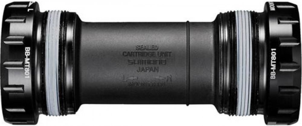 Závitová středová osa Shimano XT BB-MT801 Hollowtech II pro kliky s 24 mm integrovanou osou ložiska a šířkou pláště 68/73 mm. Díky lepšímu těsnění a rotaci poskytuje středová konzola SHIMANO DEORE XT vysokou efektivitu jízdy.