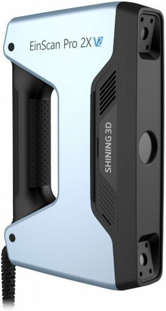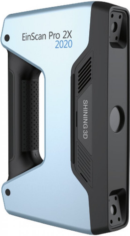 EinScan Pro 2X 2020 je nejnovější verze 3D 3D skeneru Shining. Zařízení má tři provozní režimy. Umožňuje manuální vysokorychlostní nebo HD skenování a řešení Fixed Scan, které lze kombinovat s volitelným gramofonem. EinScan Pro 2X 2020 zpracovává rychlostí až 1 500 000 bodů za sekundu (30 sn./s) v režimu manuálního rychlého skenování. Součástí dodávky je software Solid EdgeSHINING 3D Edition.