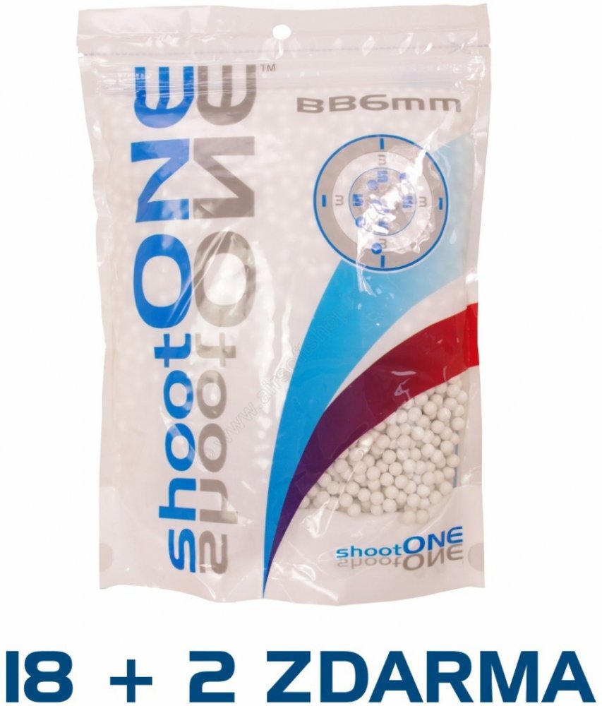 shootONE – BB6mm kuličky vhodné do manuálních, plynových a elektrických airsoftových zbraní všech výrobců. Lze použít i pro zbraně s přesnými a těsnými hlavněmi.