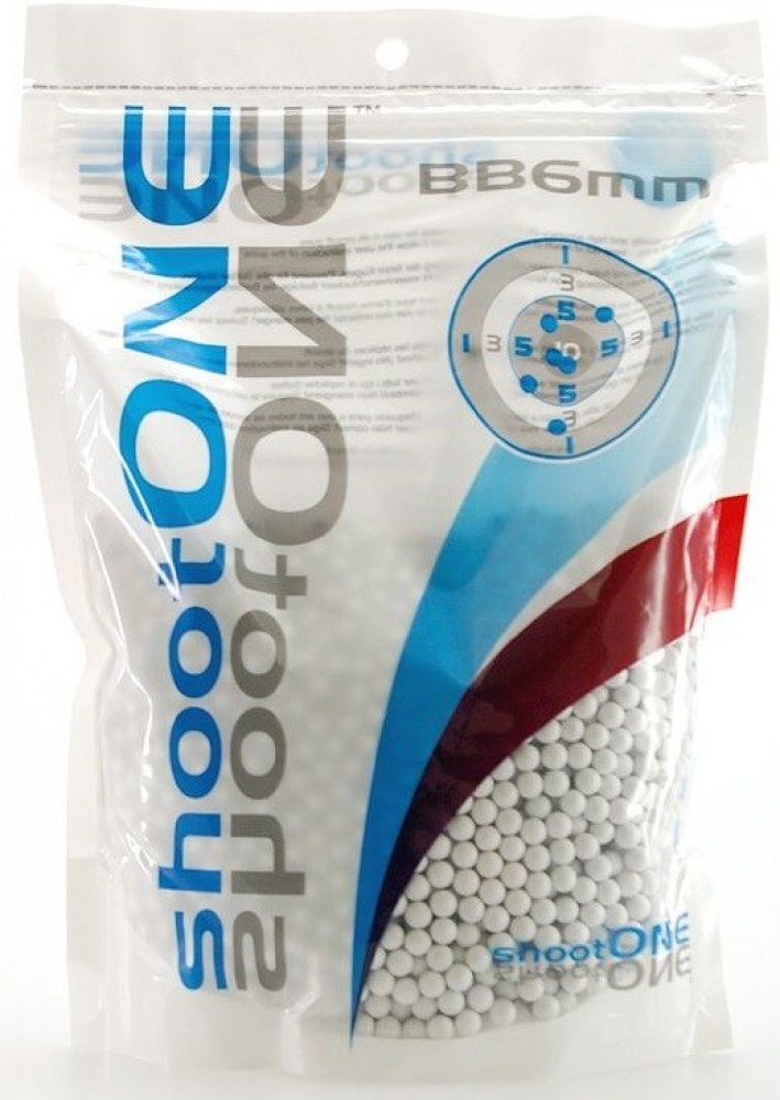 Kuličky ShootONE 0,25g jsou vhodné do manuálních, plynových i elektrických airsoftových zbraní všech výrobců. Lze použít i pro zbraně s přesnými a těsnými hlavněmi. Jedná se o 6mm kuličky o váze 0.25g. V balení se nachází přibližně 4000 kuliček.