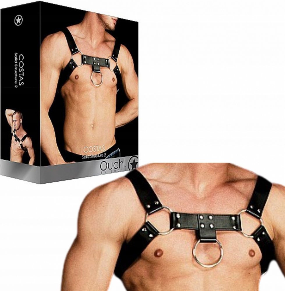 Shots Ouch! Costas 2 Chest Harness černý kožený postroj pro muže