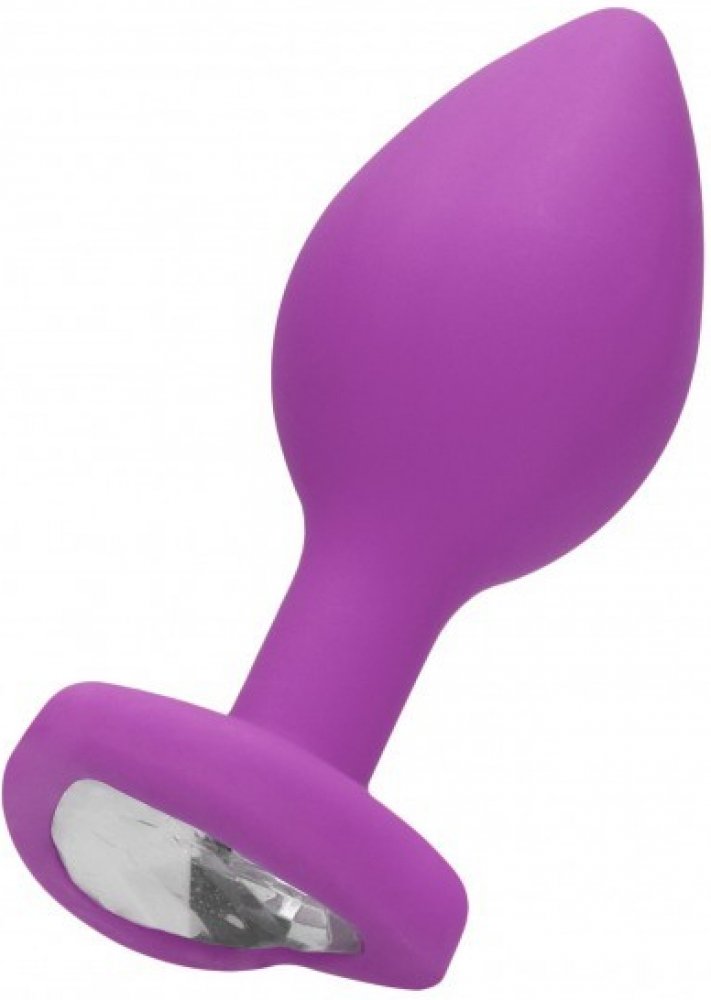 Zaujměte tímto krásným fialovým análním kolíkem s třpytivým šperkem ve tvaru diamantového srdce. Celková délka 7,4 cm, použitelná délka 6,2 cm, průměr 1,1–2,9 cm. Vyrobený ze silikonu bez obsahu ftalátů.