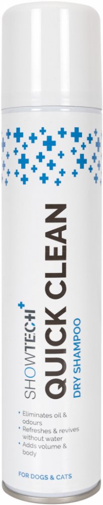 Hrál si váš pes venku nebo jste se právě vrátili z procházky v lese? Možná dorazíte na výstavu po dlouhé cestě a váš pes se cestou do kruhu ušpiní! Někdy není úplná koupel možná, nyní s funkcí Show Tech+ Quick Clean je snadné vyčistit srst vašeho mazlíčka i cestách! Použití: Tento šampon používejte pouze na suchou srst. Dobře protřepejte. Držte sprej svisle ve vzdálenosti cca 20 až 30 cm (v závislosti na délce srsti) a nastříkejte. Jemně konečky prstů vmasírujte až ke kořínkům. Poté dobře vykartáčujte.