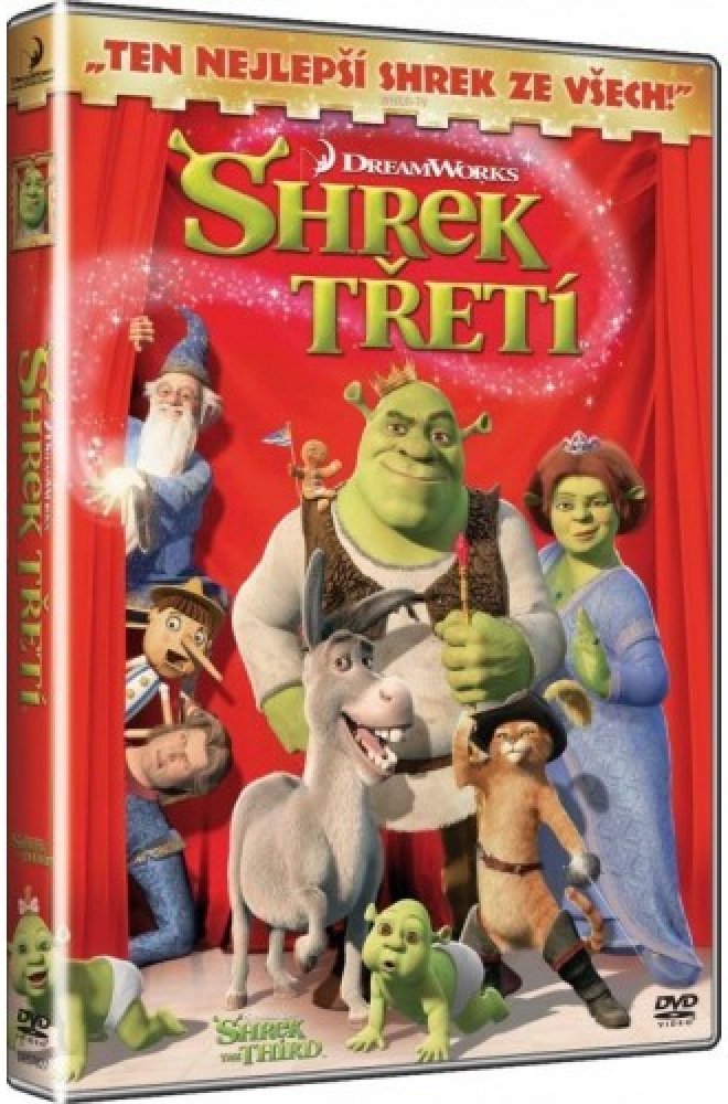 Za normálních okolností by krásní, mladí a zelení manželé Shrekovi po odstranění zákeřné Kmotřičky víly a jejího nemožného syna Krasoně ve druhém pokračování animované komedie Shrek žili nerušeně a hlavně šťastně až do smrti. Vzhledem k tomu, že se stali protagonisty nejúspěšnějšího animovaného filmu všech dob, nemají na pohodu nárok. Dobrodružství, která si pro ně kreativní scenáristé vymysleli tentokrát, jsou ještě vypečenější, než ta, která oba zlobříci prožili doposud. Posuďte sami: Král Harold má na kahánku, a je proto jasné, že musí vládu v království Za sedmero horami někomu předat. Ještě jasnější je, že nástupcem trůnu se má stát manžel jeho nejjasnější dcery Fiony. Shrek se ale vyhlídkám na kralování brání tak intenzívně, že se raději rozhodne přemluvit Fionina bratrance, teenagera Artuše, aby si královskou korunu nasadil on. Nejdřív ho ale bude muset najít a udělat z něj chlapa. Zatímco Shrek, Oslík a Kocour v botách se vydávají na poměrně dobrodružnou expedici, osiřelá Fiona má úplně jiné starosti. Absence mužského elementu v království se rozhodne zneužít již jednou odpálkovaný Krasoň, který se chce za pomoci záporných pohádkových postav zmocnit vlády v zemi Za sedmero horami násilím. Fiona je ale především Zlobryně a až na druhém místě princezna, a proto se Krasoňovi a jeho zlé armádě postaví. Navíc není sama, v první linii s ní kromě královny Lilien kráčí i svůdné komando princezen (Sněhurka, Popelka, Růženka a další), které jsou odhodlány všechny své přednosti využít boji. Ve Shrekovi Třetím bude prostě pořádně veselo, a to jsme tu ještě nezmínili draslíky, roztomilé potomky Oslíka a Dračice, a jedno překvapení, které Fiona přede všemi tají. Shrek se vždycky opíral o revoluční a naprosto dokonalou animaci a hvězdné hlasové obsazení. Obojí mu zůstalo i ve třetím pokračování, navíc se může pochlubit mimořádně zajímavým hereckým přírůstkem v podání popové ikony současnosti Justina Timberlakea, kterého v české verzi nahradí podobně slavný Vojtěch Kotek. Režie se ujal Chris Miller, který psal ke dvěma předchozím dílům scénáře, a Raman Hui, supervizor animace jedničky i dvojky