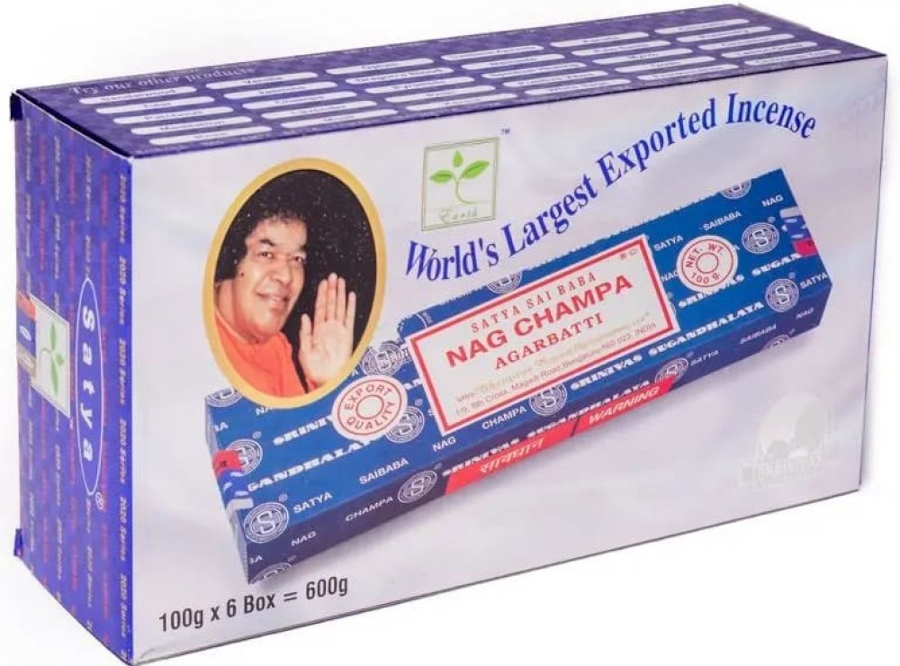 XL balení, 100 gramů, oblíbené vonné tyčinky, proslulé, originální Satya Nag Champa. Údajně nejprodávanější vonné tyčinky na celém světě. Se značkou se spojuje věhlasný Sai Baba indický guru jehož portrét je na vnějším obalu, na kartonu.