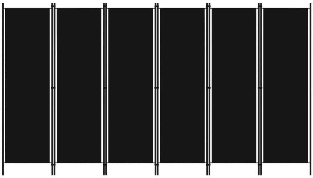 Náš praktický samostatně stojící šestidílný paraván vám skvěle poslouží k rozdělení místnosti, jako neprůhledná zástěna nebo i jako dekorace. Pomůže vám v ložnici vytvořit ideální soukromí či oddělit část pokoje. Zástěnu tvoří rám z práškově lakovaného železa a látkové výplně, takže když ji nepoužíváte, můžete ji snadno složit. Poznámka: Látka zcela neblokuje všechno světlo. Barva: černá Materiál: látka (100% polyester), práškově lakované železo Celkové rozměry: 300 x 180 cm (Š x V) Rozměry jednotlivých látkových výplní: 46,5 x 175 cm (Š x V) Se 6 panely Montáž nutná: ano