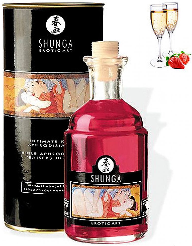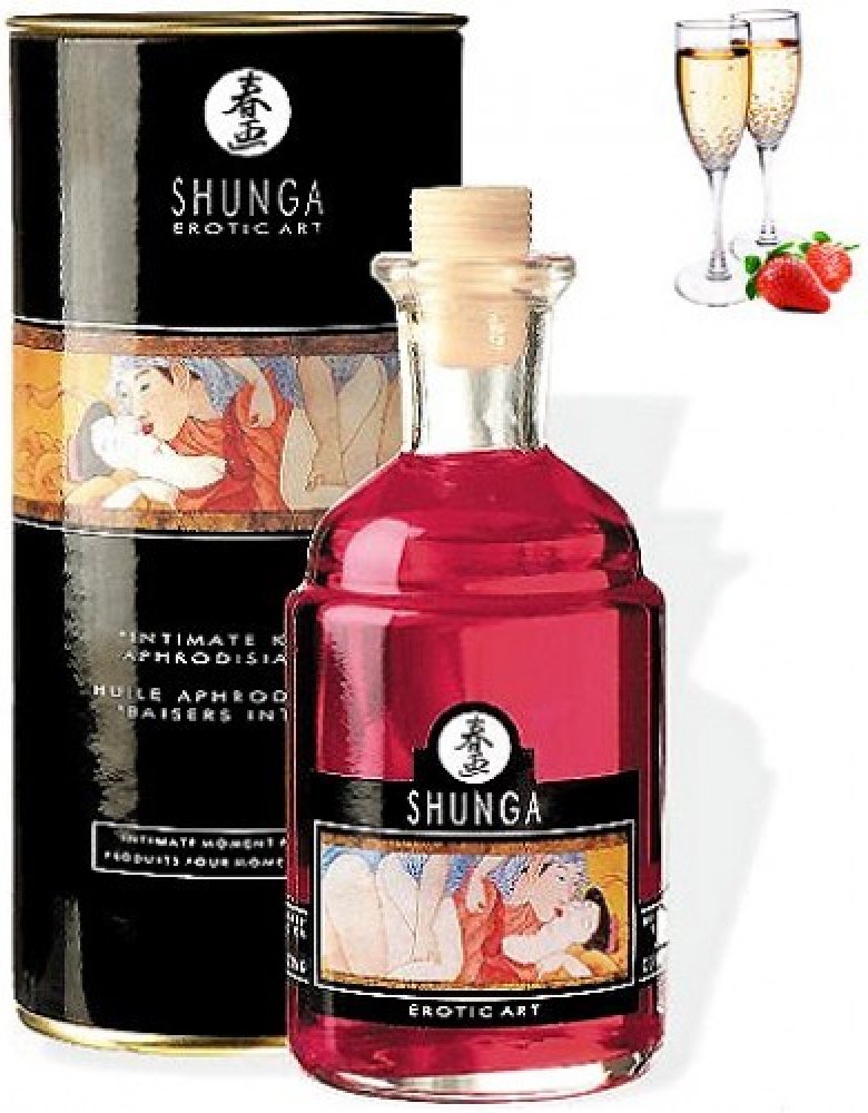 Masážní jedlý olej s příchutí šampaňského a jahod je vyroben známou značkou Shunga. Olej má silné afrodisiakální účinky, které blahodárně působí na celé vaše tělo a smysly. Navíc je vyroben z čistě přírodních produktů s příjemnou vůní a chutí. Použití je velmi jednoduché. Naneste požadované množství na libovolnou část partnerova těla a pomocí jemného foukání aktivujte hřejivý efekt.