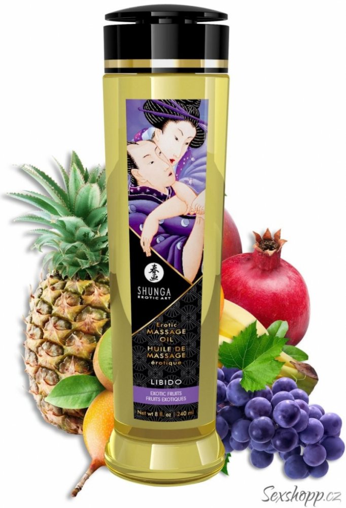 Otevřete bránu k nezapomenutelnému zážitku smyslnosti s profesionálním masážním olejem Shunga Libido. Tento olej, o objemu 240 ml, přináší nejen vynikající hladkost a hydrataci, ale také se můžete těšit na stoprocentní přírodní složení. Vstupte do světa uvolnění a harmonie, kde se doteky stávají neviditelným spojencem intenzivních emocí. Olej Shunga Libido je nejen milostným rituálem pro vaši pokožku, ale také posiluje spojení mezi partnery. S jemným aroma přírodních esencí, jakmile tento olej sklouzne po kůži, začne se uvolňovat vlna klidu a relaxace. Jeho jedinečná formulace přirozených olejů zanechává pokožku hedvábně hladkou a svěže provoněnou. Profesionální masážní olej Shunga Libido je cestou k nezapomenutelným intimním okamžikům, kde se setkává síla přírody s vášní lidí. Přiveďte do svého života harmonii a rozkoš s tímto exkluzivním masážním olejem. Parametry: Objem 240 ml Aroma: Exotické ovoce 100% přírodní oleje lisované za studena Obsahuje vitamin E (antioxidant) Bez žádných usazenin a částic Neucpává póry Žádný minerální ani živočišný olej Vegan-friendly Afrodiziakální účinek