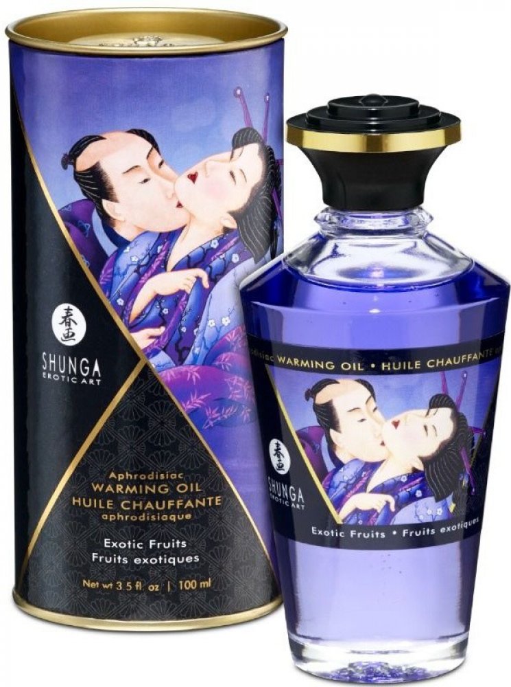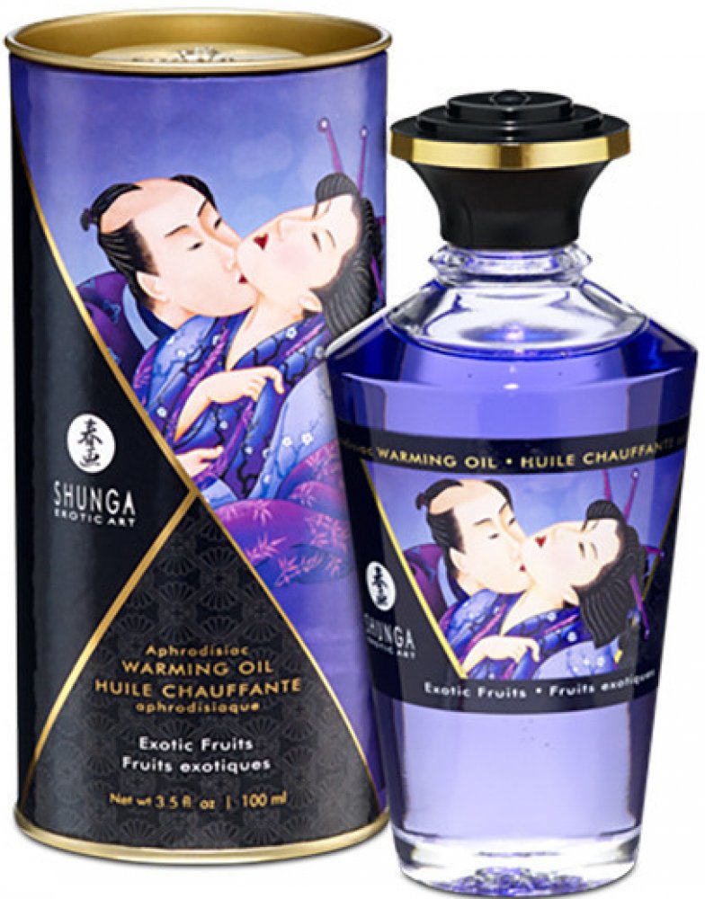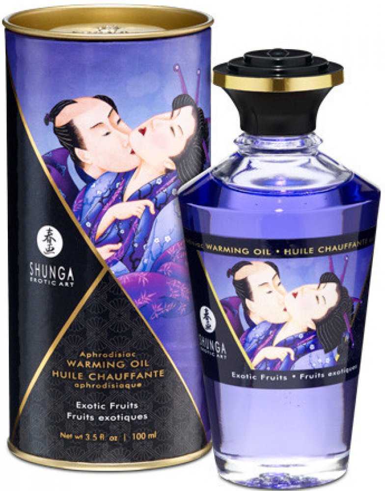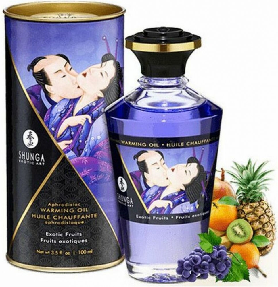Hřejivý masážní olejíček od prvotřídní značky Shunga pro prožití společných erotických chvil. S příjemným aroma exotického ovoce provoní místnost.