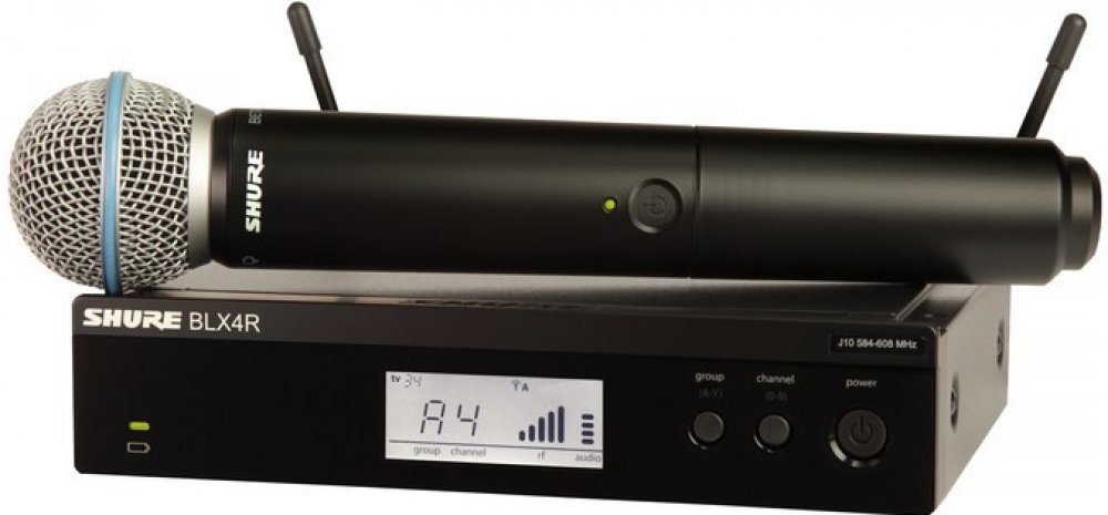 Bezdrátový systém BW systém, pack obsahuje přijímač BLX4R, který je montovatelný do racku, ruční mikrofon BETA58 s vestavěným vysílačem BLX2, vysílač je napájen dvěma bateriemi AA (součást balení), doba provozu 14 hodin, dosah signálu: 91m. Frekvence: 518-542 MHz