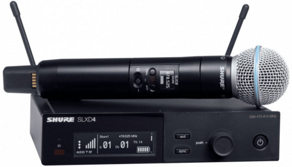 Bezdrátový systém SLXD s ručním vysílačem Beta58A, pracovní frekvence: 518-562MHz