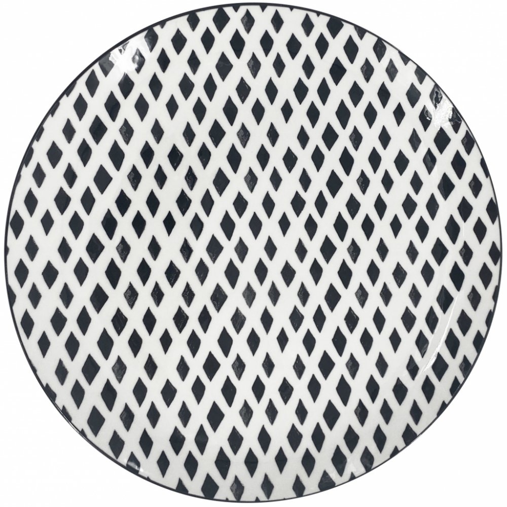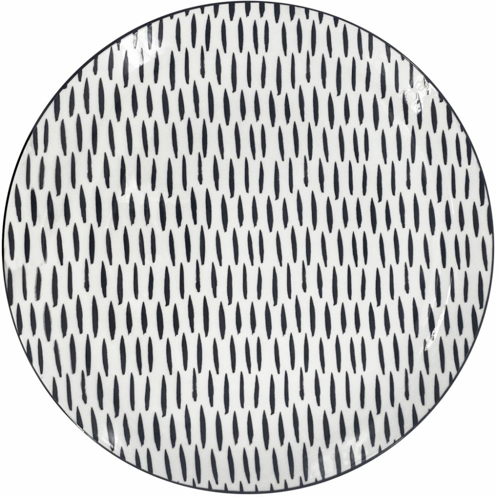 Porcelánový mělký talíř BlackLine s černým dekorem.