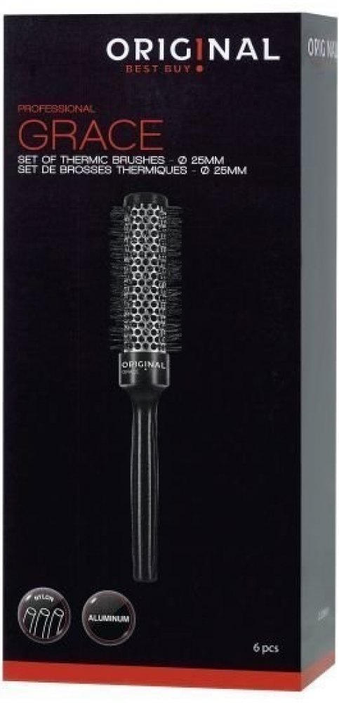 Grace set kartáčů je ideální pro častý situaci v kadeřnictvích - potřeba použití více kartáčů najednou během práce. S tímto setem můžete použít až 6 kartáčů během jednoho stylingu. Nylonové štětiny a hliníkové tělo jsou ideální pro zaručení skvělého výsledku. Set obsahuje 6 kartáčů průměru 25mm.