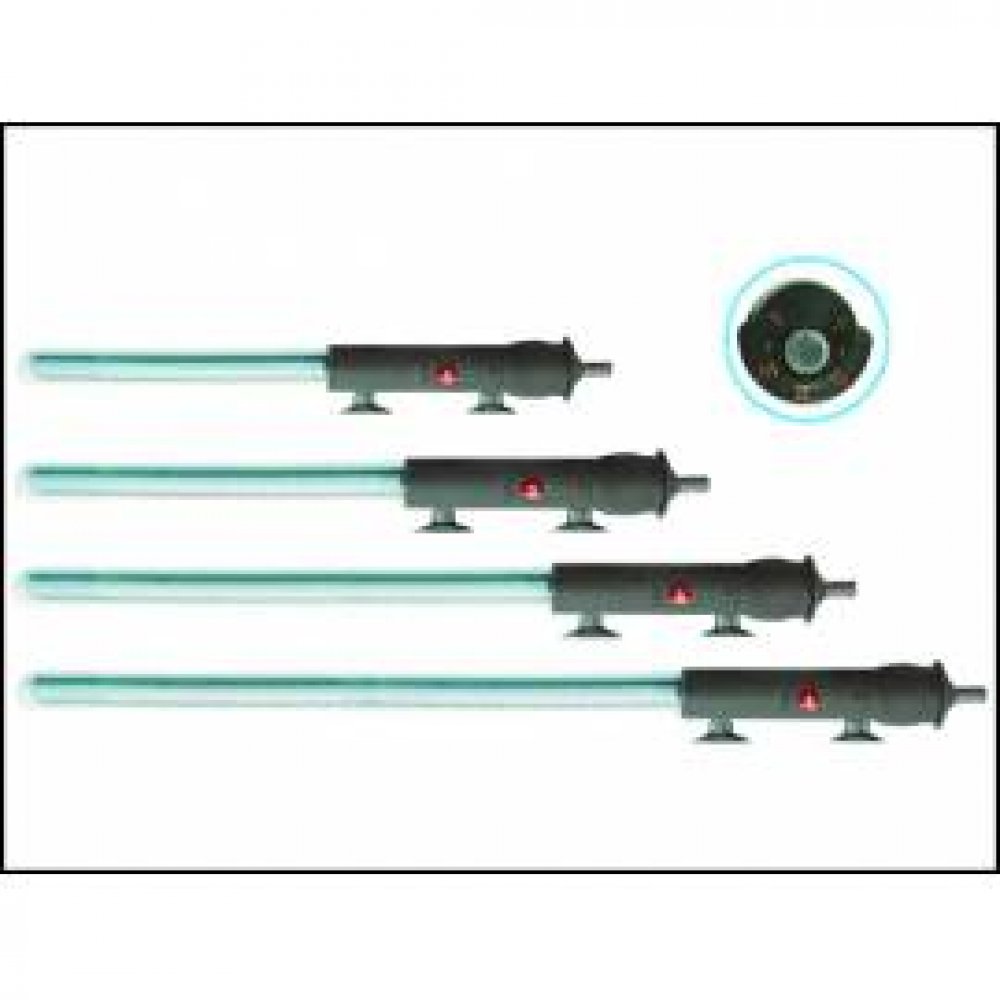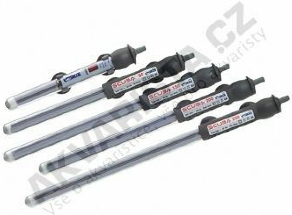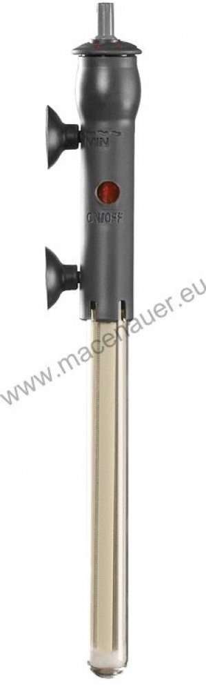 Akvarijní topítko. Instalace: Na topítko nasaďte přísavky. Knoflíkem nastavte požadovanou teplotu. Ponořte přístroj celý do vody a pak ho pomocí přísavek připevněte na stěnu akvária. Hladina vody by nikdy neměla klesnout pod značku MIN. Aby byla zajištěna optimální výměna tepla, umístěte přístroj do místa s dobrou cirkulací vody. Pak zastrčte vidlici kabelu do síťové zásuvky. Svítící červená kontr...