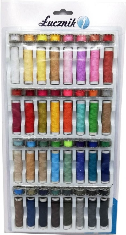 32 barevných nití na špulkách (návin cca 10m)32 kovových nacívkovaných CB cívekOvěřte si zda-li cívky pasují do Vašeho stroje.Cívky nejsou vhodné:- pro šicí stroje s horizontálním rotačním chapačem- pro staré stroje Veritas