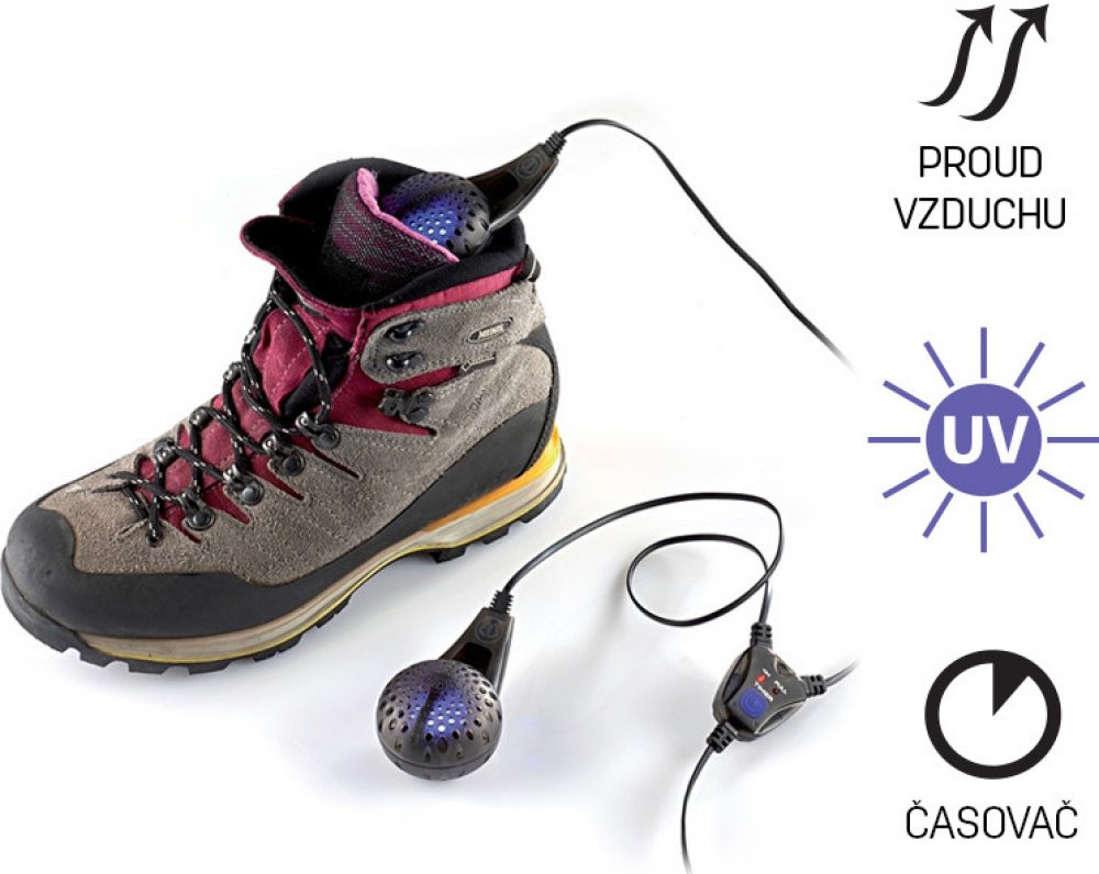 Integrovaný ventilátor v kombinaci s UV světlem proti bakteriím umožňují rychlé a efektivní sušení všech typů bot. Zabudovaný časovač umožňuje kontrolovat dobu vysoušení.