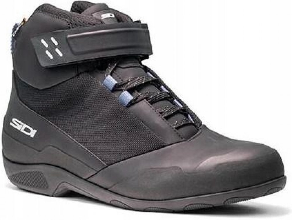 Komfortní dvoubarevná podrážka je vyrobena z pryžového materiálu a disponuje dekorativní miniaturou italské vlajky. Pohodlná a vyjímatelná tvarovaná stélka je tvořena pěnovým EVA materiálem. Jednoduchý a rychlý utahovací systém je se skládá u tkaniček a suchého zipu Velcro s dvojí funkcí regulace utažení boty kolem kotníku a zároveň překrývajícím tkaničky. Detail v podobě poutka na patě pomůže při nazouvání. V zadní části moto bot SIDI Meta jsou umístěny prvky z reflexního syntetického materiálu, díky kterému budete lépe viditelní v noci nebo za jinak zhoršených podmínek a bude tak zvýšena Vaše pasivní bezpečnost.
