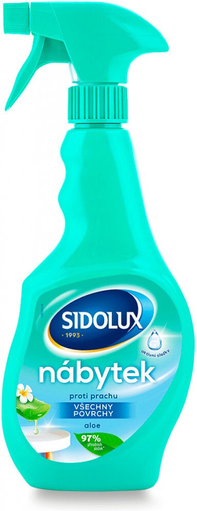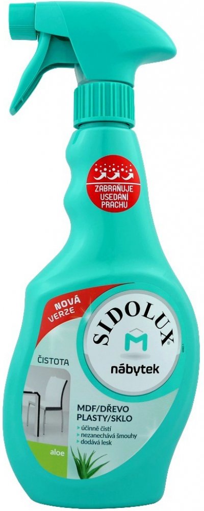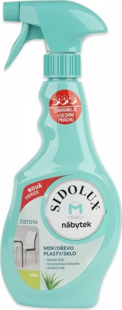 Sidolux M proti prachu je speciální sprej vhodný na většinu povrchů, které se doma nachází. Produkt Anti Dust je možné použít na dřevo, mdf, plast, lakované povrchy, nerez a sklo. Prostředek velmi příjemně voní a jeho použití je velmi jednoduché a příjemné díky nádobce, která má rozprašovač a praktický tvar. Prostředek Sidolux M proti prachu s Aloe Vera je vhodný na běžné denní čištění všech výše uvedených ploch od nečistot, mastnoty a prachu. Díky nové formuli také zaceluje póry materiálů a zabraňuje tak aktivně usazování prachu. Prostředek má velmi příjemnou vůni a provoní tak celý byt. Výborný je na každodenní použití na pracovní desky, pracovní stoly a další takto namáhané povrchy.