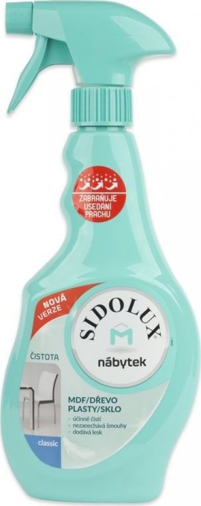 Sidolux M proti prachu Classic je praktický sprej proti prachu, který najde využití při běžné péči o nábytek a domácí povrchy. Produkt Anti Dust lze bezpečně použít na dřevo, MDF, plast, lakované povrchy a nerez, což z něj činí univerzální pomocníka pro rychlý úklid i pravidelnou údržbu.