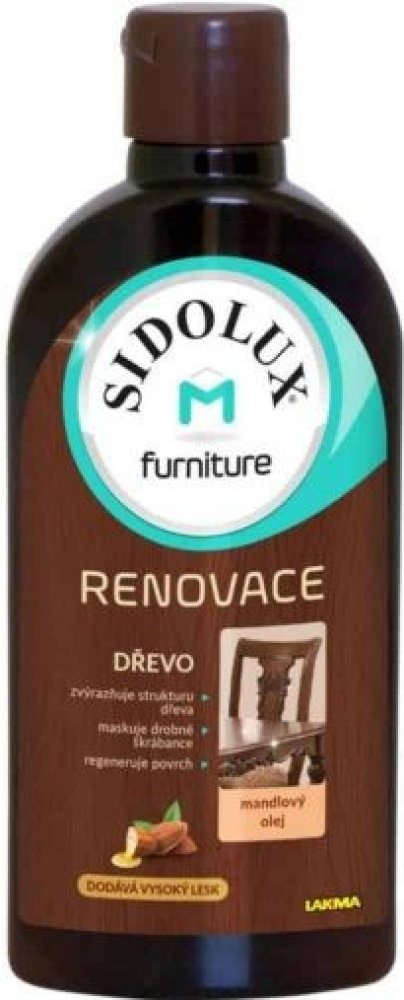 Mléko Sidolux M Furniture umožňuje díky obsahu přírodního madlového oleje obnovit vzhled opotřebenému nábytku ze dřeva, dýhy, nebo laminátu.