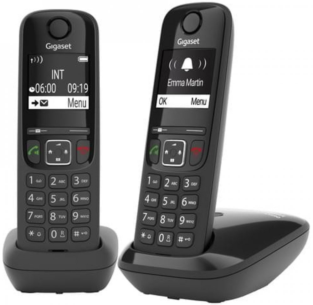 Telefon Gigaset A690DUO v černo-stříbrném provedeníJednoduše dobře znějící telefon DECT se skvělými zvukovými funkcemi Správná volba pro ty, kteří chtějí mluvit jak na sluchátku, tak v režimu handsfree a zároveň dělat jiné věci. V režimu handsfree se hovoru může účastnit i osoba vedle vás a můžete se také rozhodnout, který ze dvou dostupných zvukových profilů s vyššími nebo nižšími frekvencemi bude vyhovovat vašim potřebám. Ať už si vyberete cokoli, vždy můžete očekávat vynikající kvalitu hlasu! Přehledný, ergonomický, intuitivní, snadno ovladatelný bezdrátový telefon První, čeho si na telefonu Gigaset A690 všimnete, je jeho velký, osvětlený černobílý grafický displej. Jeho největšími přednostmi jsou velikost znaků v režimu vytáčení a výrazný kontrast mezi černými číslicemi a bílým pozadím, který výrazně usnadňuje čtení informací na displeji telefonu. K většímu pohodlí při telefonování přispívá také ergonomická klávesnice s podsvícenými tlačítky a intuitivní ovládání. Černá listina - už žádné nechtěné hovory Pokud už máte dost nechtěných hovorů a obtěžujících telemarketérů, můžete anonymní hovory nebo příchozí hovory z konkrétních čísel eliminovat přidáním na černou listinu s maximální kapacitou 32 záznamů. Po aktivaci funkce se hovor z takového čísla automaticky odmítne nebo signalizuje na displeji bez aktivace vyzvánění telefonu. Čísla lze na černou listinu přidat ručně nebo je zkopírovat z historie hovorů. Můžete také zablokovat vyzvánění anonymních hovorů (bez identifikace čísla) a nastavit časové rozmezí, ve kterém má telefon signalizovat nebo nesignalizovat příchozí hovory. Navíc můžete vybraná čísla přidat do skupiny VIP, aby byla tato volání vždy signalizována, i když je aktivována funkce nerušit. Bezdrátový telefon s telefonním seznamem a dlouhou dobou hovoru Gigaset A690 nabízí 14 hodin hovoru bez dobíjení. Můžete si tak být jisti, že váš hovor nebude přerušen a sluchátko bude vždy připraveno k použití. Integrovaný telefonní seznam pojme až 100 jmen a čísel. Kromě toho se na displeji telefonu zobrazuje posledních 25 hovorů spolu s číslem volajícího a časem, kdy volal, což uživateli umožňuje rychlezpět. Sluchátko vydrží v pohotovostním režimu 180 hodin bez dobíjení. Ještě více možností díky možnosti připojení dalších sluchátek Používejte telefon, kdekoli ho potřebujete. Telefon Gigaset A690 lze rozšířit až o čtyři další sluchátka, která můžete pohodlně umístit kdekoli v domácnosti. Ať už jste v kuchyni, ložnici nebo kancelářské místnosti, budete mít telefon vždy po ruce. Vždy šetrný k životnímu prostředí - snižte záření pomocí technologie ECO DECT Stejně jako všechny bezdrátové telefony Gigaset je i Gigaset A690 vybaven technologií ECO DECT, která je šetrná k životnímu prostředí. To znamená, že telefon v pohotovostním režimu nevyzařuje žádné rádiové záření, a to ani v případě, že používáte více sluchátek, pokud základna systému a všechna připojená sluchátka rovněž podporují technologii ECO DECT. Během hovoru se vysílací výkon automaticky přizpůsobuje vzdálenosti mezi sluchátkem a základnou telefonu. Čím menší je vzdálenost mezi sluchátkem a základnou, tím nižší je vyzařování. Pro dosažení maximálního dosahu DECT lze režim ECO DECT kdykoli vypnout.