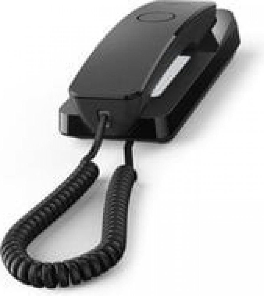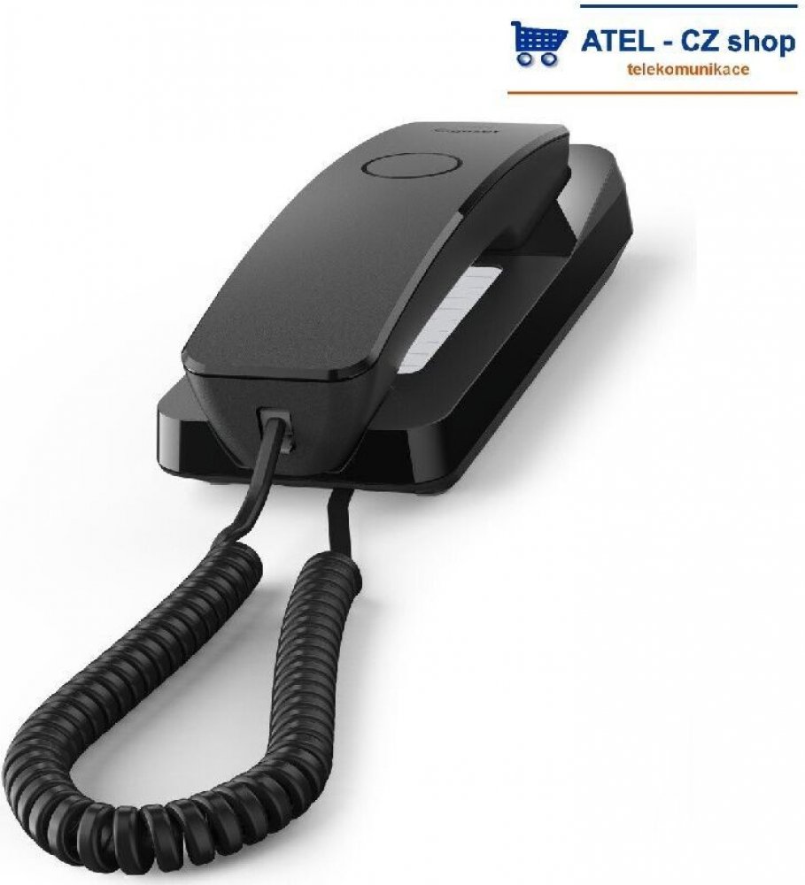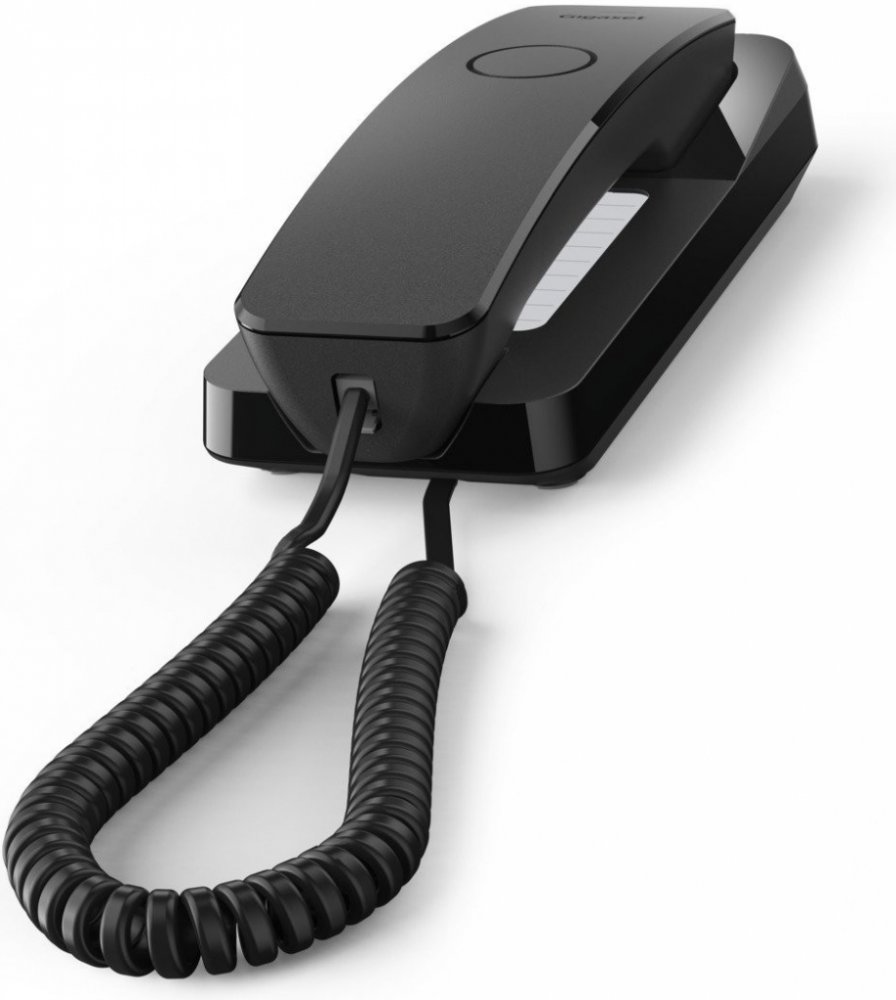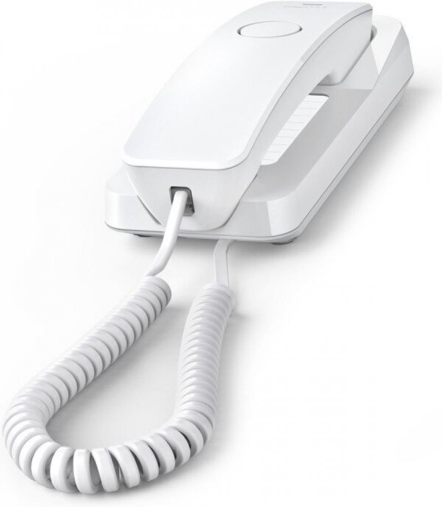 Šňůrový stolní a nástěnný telefon Gigaset DESK 200 ohromuje svým úzkým tvarem šetřícím místo a je ideální pro použití doma nebo v kanceláři.