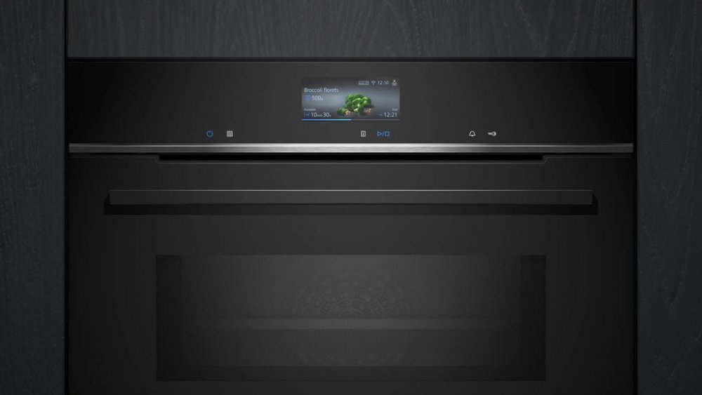 pečicí trouba Siemens HM736GAB1 s mikrovlnami, vestavná trouba s grilem a mikrovlnami, Siemens trouby s Home Connect, vestavné trouby Siemens, katalytické čištění trouby, TFT dotykový displej, Oven Assistant hlasové ovládání, coolStart, kapacita 67 l, bezpečnostní dětská pojistka, antracitový smalt, rychloohřev, moderní trouba do kuchyně