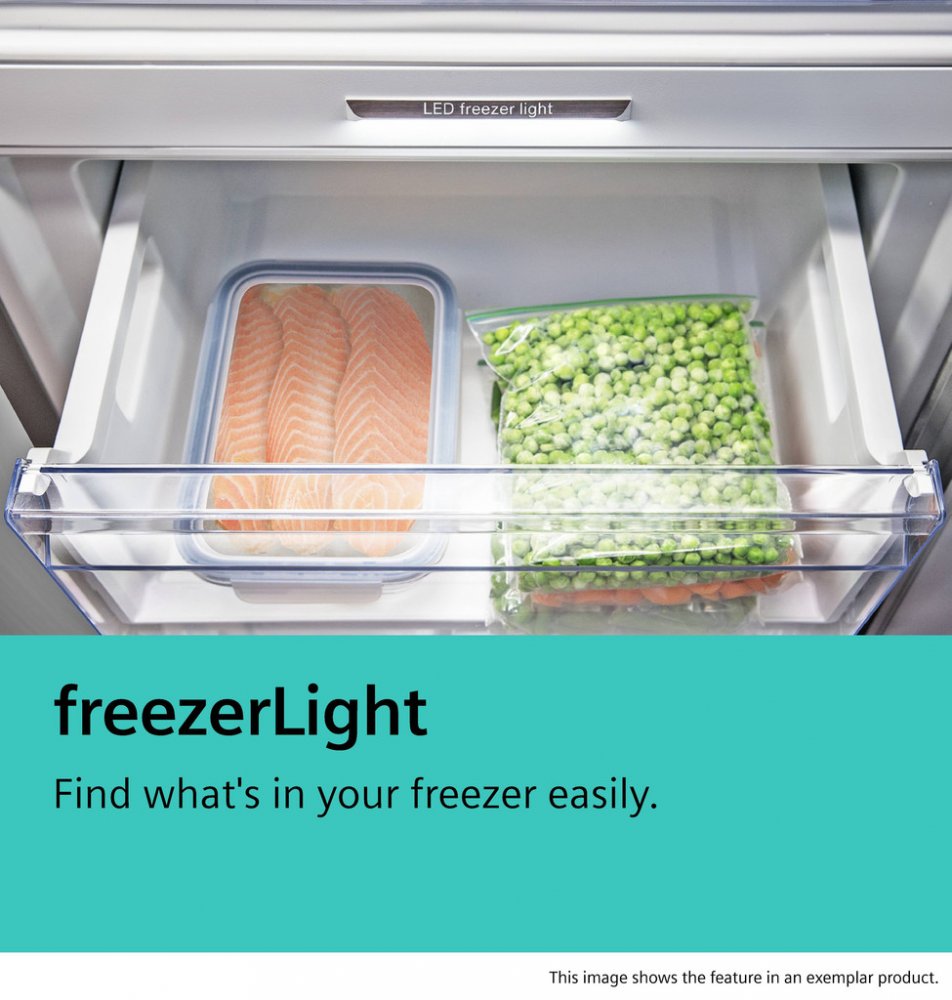 Stalo se vám někdy, že jste něco hledali v chladničce a ne a ne to najít? To se vám už nestane. Jasné LED světlo dokonale ozáří vnitřek chladničky světly, které proniknou do každého rohu. Další světlo LED FreezerLight pak optimálně osvětluje mrazák tím, že svítí přímo do otevřených zásuvek. Nyní tak můžete v chladničce i mrazáku během několika sekund najít vše, co potřebujete.