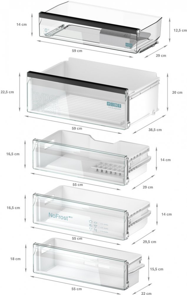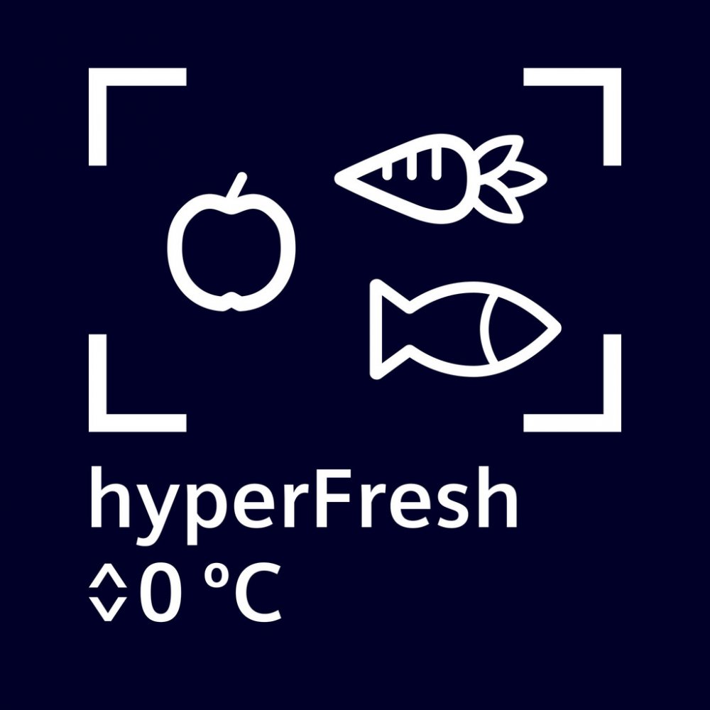 - hyperFresh : více prostoru pro ovoce a zeleninu. Chladné prostředí pro ryby a maso.