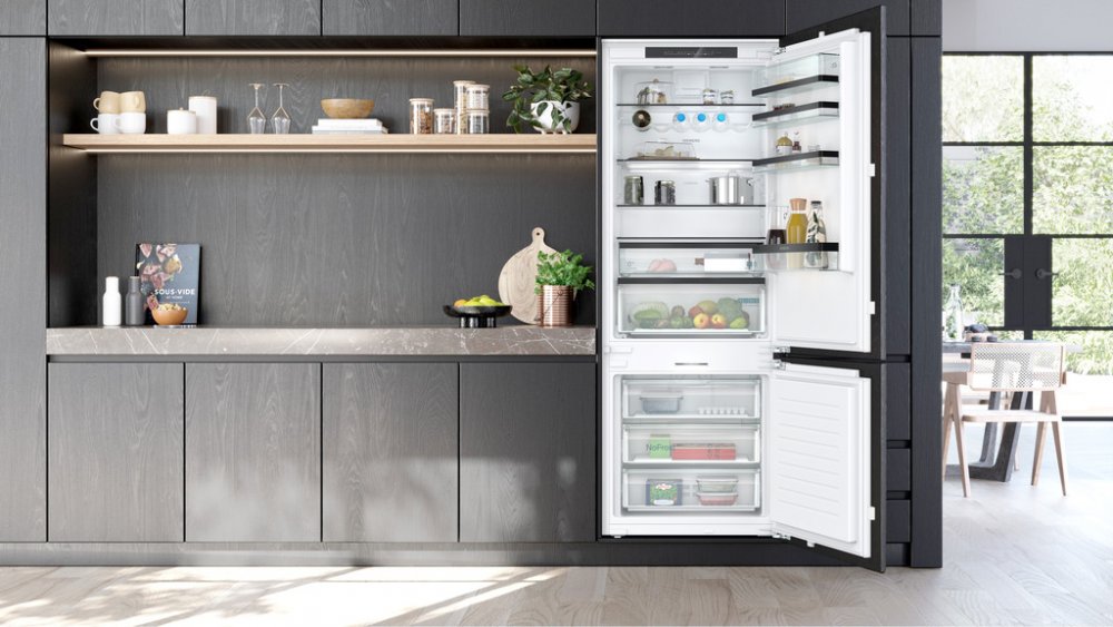 Časy, kdy byla chladnička příliš malá, jsou pryč. S vestavnou chladničkou s mrazákem o šířce 70 cm, která je vhodná do 75centimetrové nábytkové niky, získáte až o 45 % větší objem pro svůj týdenní nákup. Můžete tak nakoupit najednou i na opravdu velkou večeři. Máte totiž jistotu, že vaše potraviny zůstanou čerstvé a chutné. Ať už jde o velké talíře sushi, čerstvé ovoce a zeleninu nebo spoustu lahví, máte k dispozici dost místa pro více než jeden večírek.
