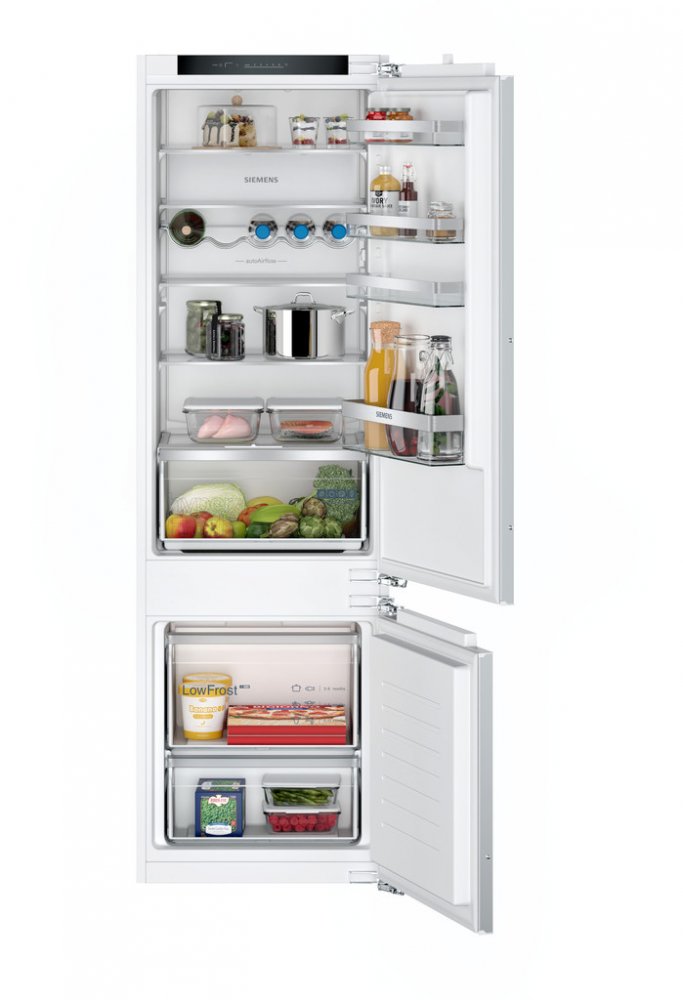 Vestavná kombinovaná chladnička s mrazákem a s technologií hyperFresh, která udrží ovoce a zeleninu déle čerstvou a LED světlem, pro brilantní osvětlení vnitřku chladničky.